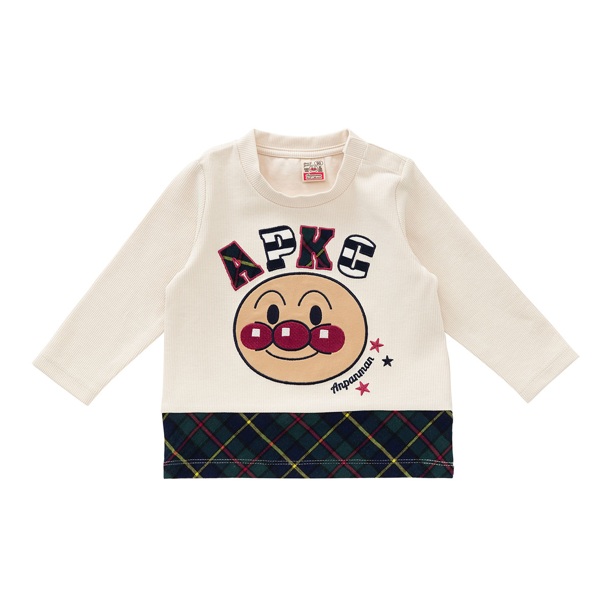 オフ白はアンパンマン、ピンクはドキンちゃんの大きなお顔とロゴのアップリケが目を引くデザイン。