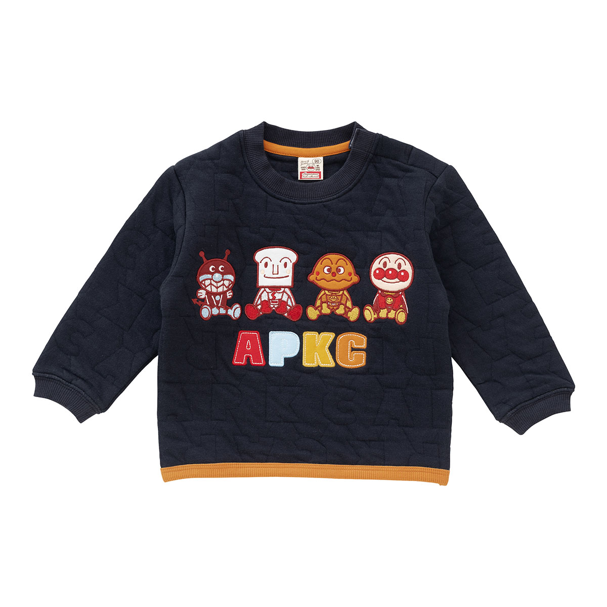 APKCのアルファベットロゴ柄のキルト生地を使用した豪華で凝ったトレーナーです。