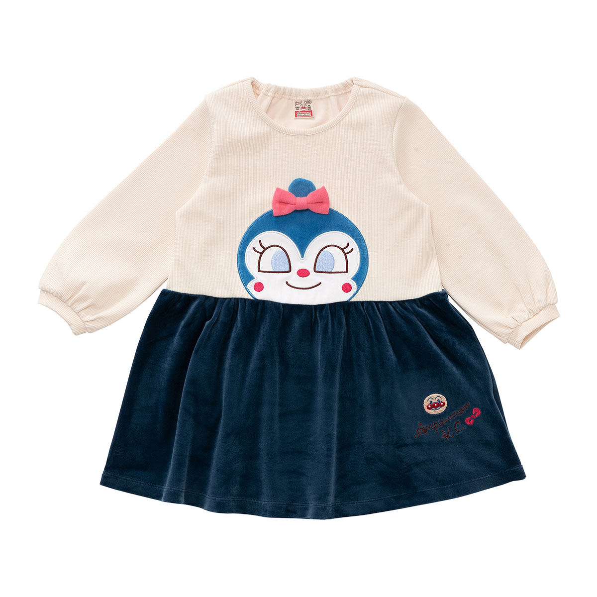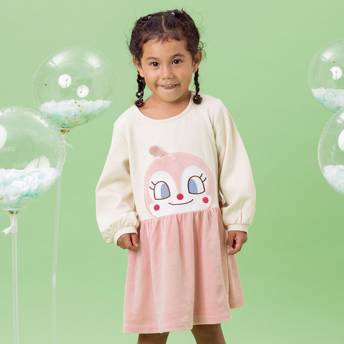 切替下のスカート部分はベロア素材を使用しており、左裾にはアンパンマンのお顔が刺繍されています。