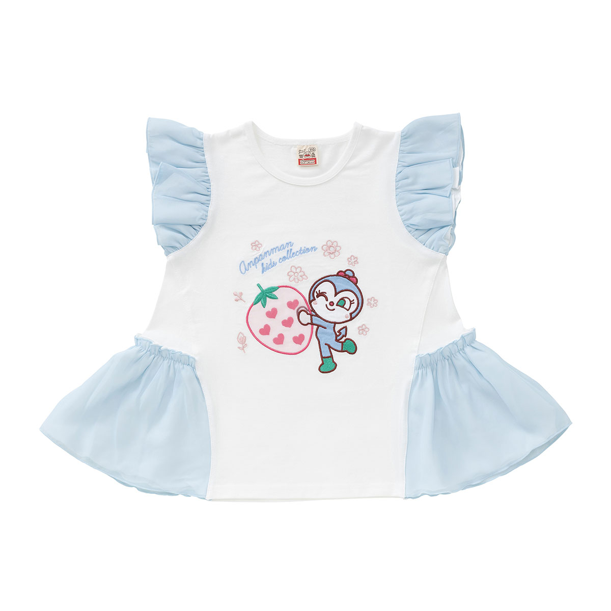 ピンク配色はドキンちゃん、サックスブルー配色はコキンちゃんのアップリケ刺繍がデザインされています。