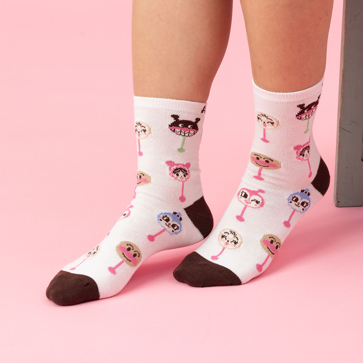 アンパンマンペロペロチョコをイメージしたクルー丈の総柄ソックス!
