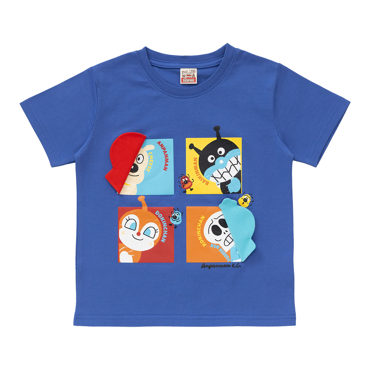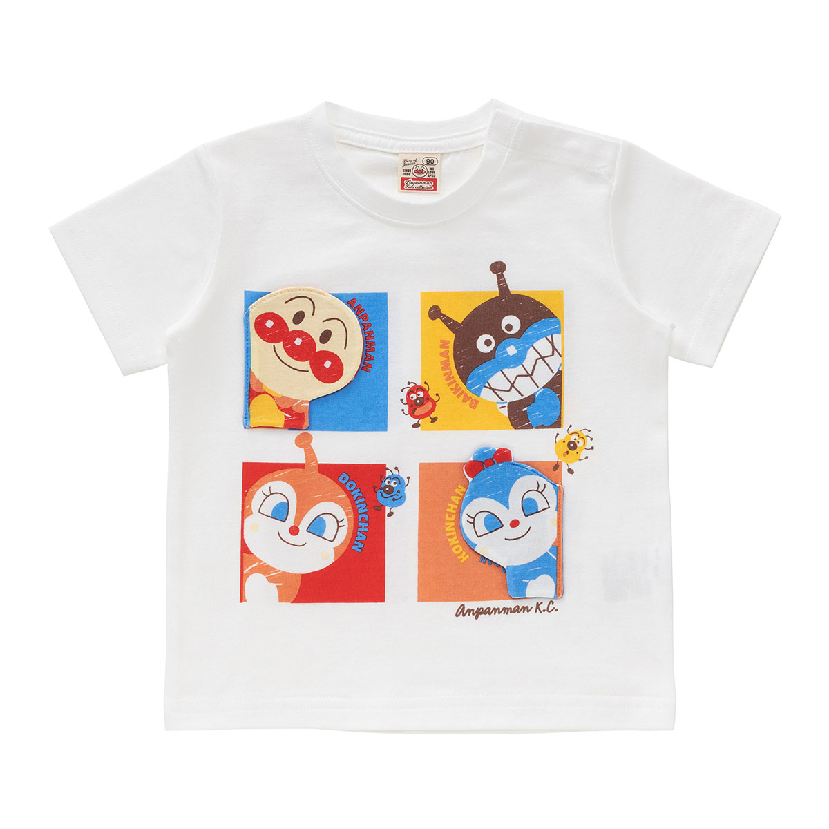 アンパンマン・ばいきんまん・ドキンちゃん・コキンちゃんがひょこっと覗いているデザインが可愛らしい半袖Tシャツ!