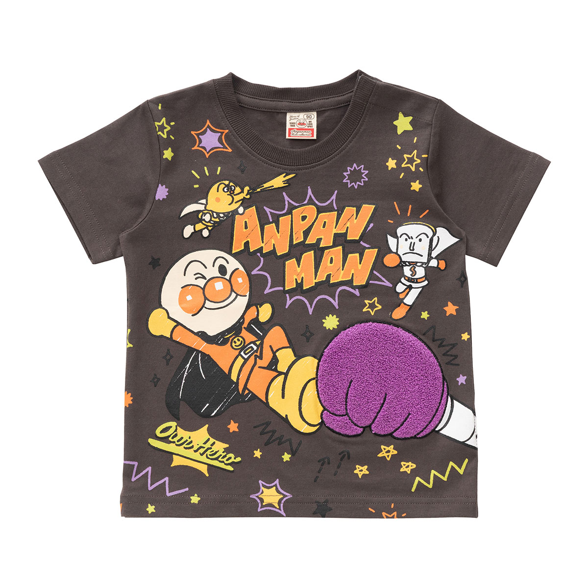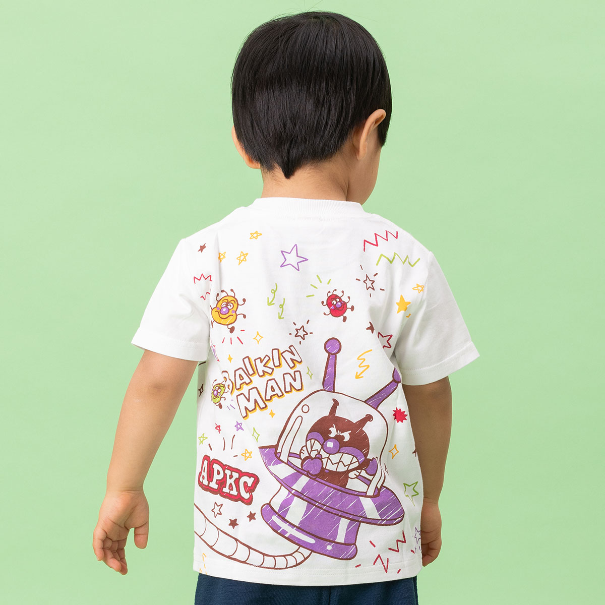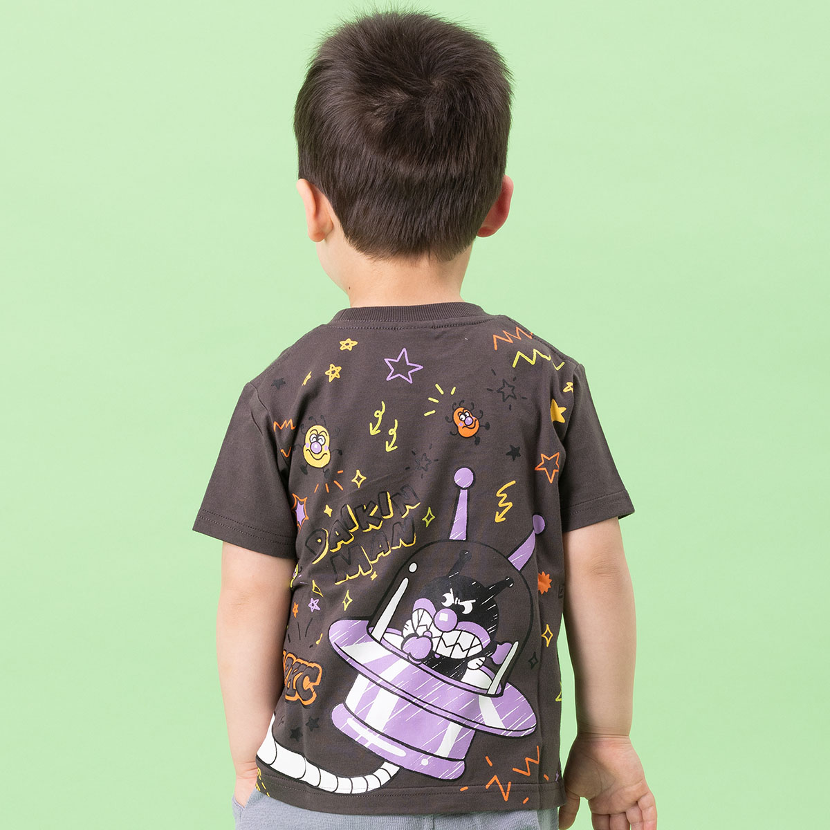 フロントとバックのデザインがつながっており、フロントにはアンパンマン・カレーパンマン・しょくぱんまん、バックにはばいきんまんとかびるんるんをプリント。