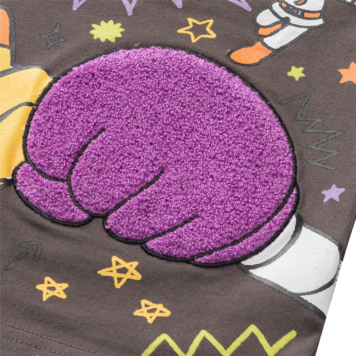 バイキンUFOの拳を、立体感のあるさがら刺繍で表現しています。