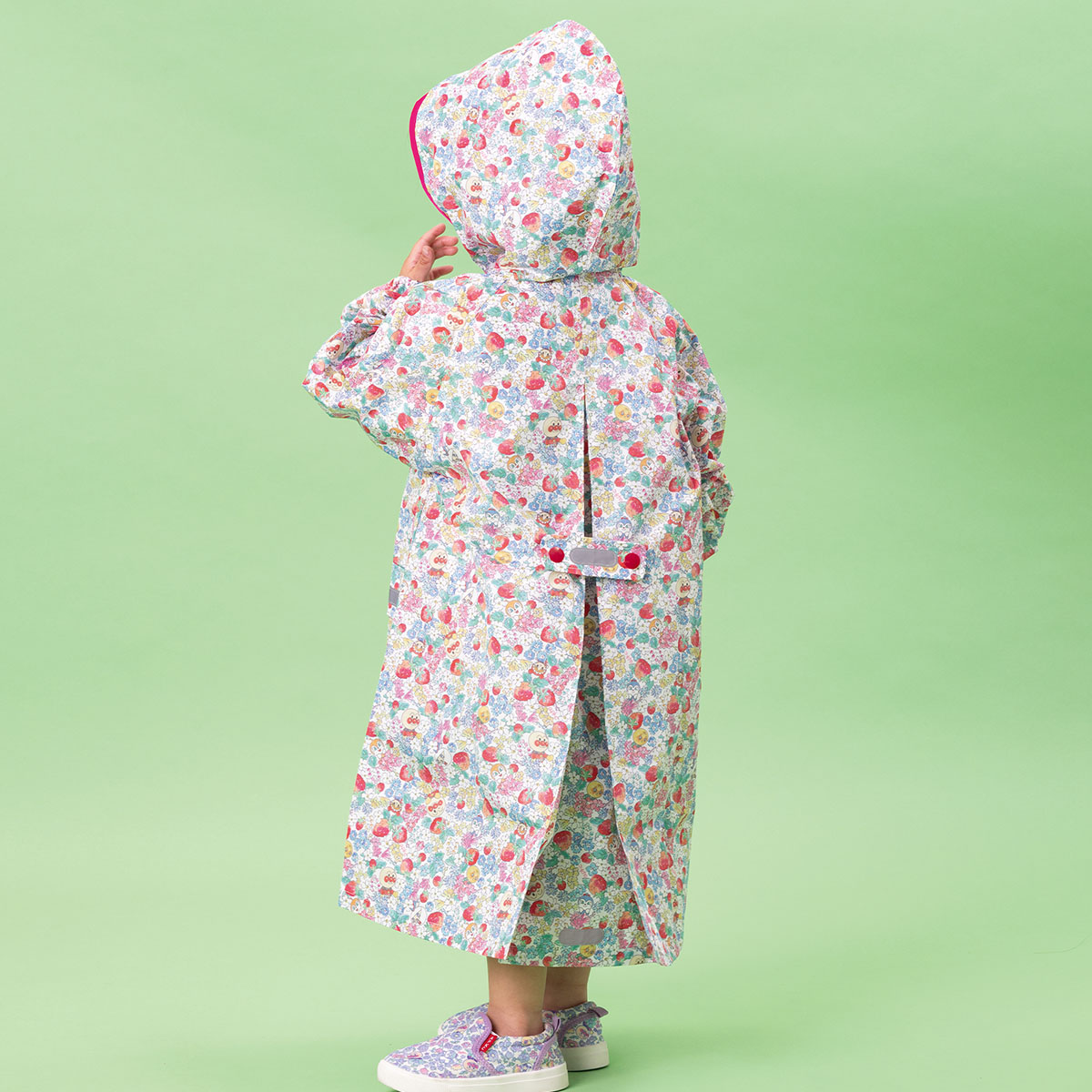 撥水仕様の生地を使用し、フロントとバックに反射材つきなのもうれしいポイント。