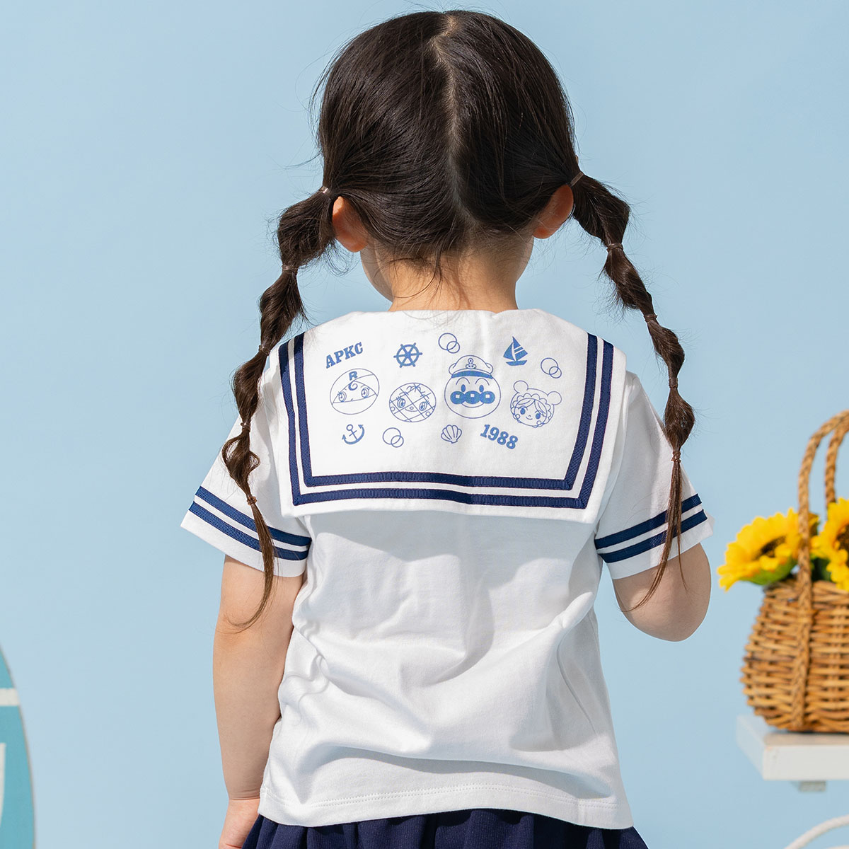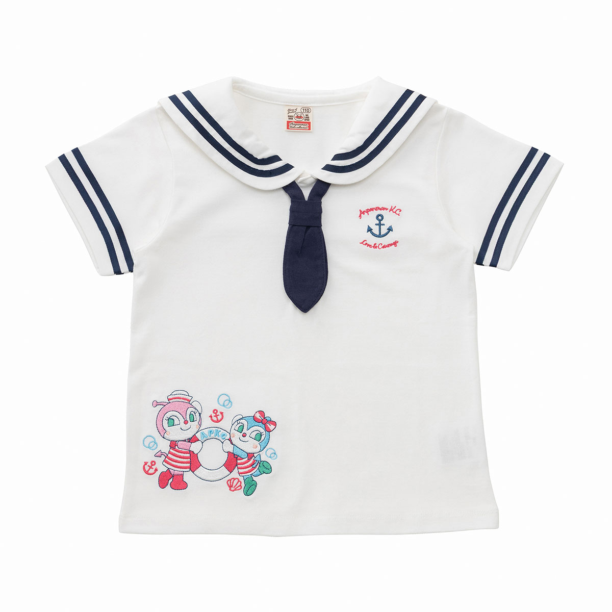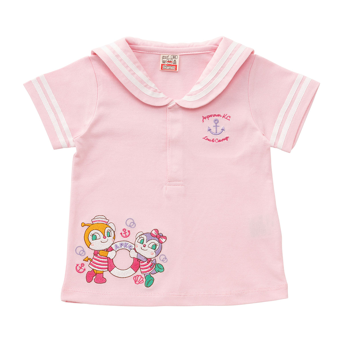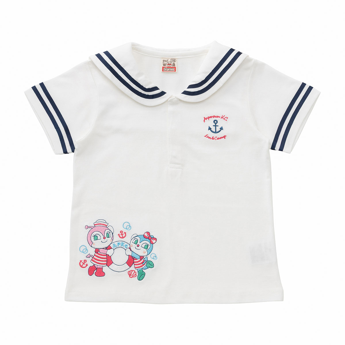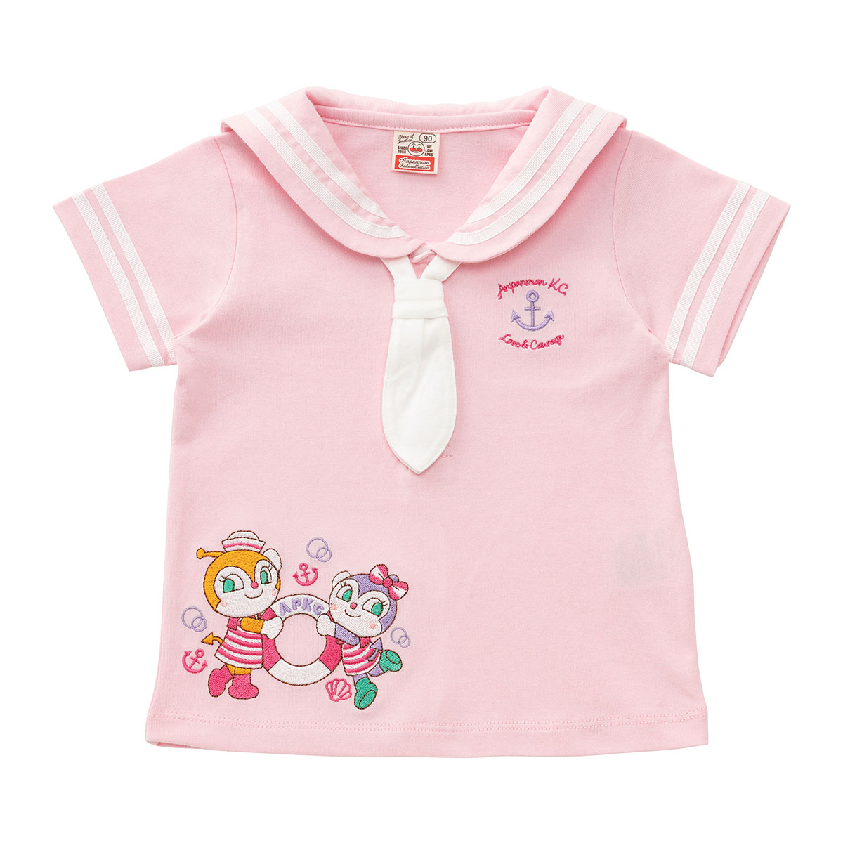 フロントのドキンちゃんとコキンちゃんは刺繍で表現されており、バックのセーラー襟部分のデザインはプリントで表現されています。