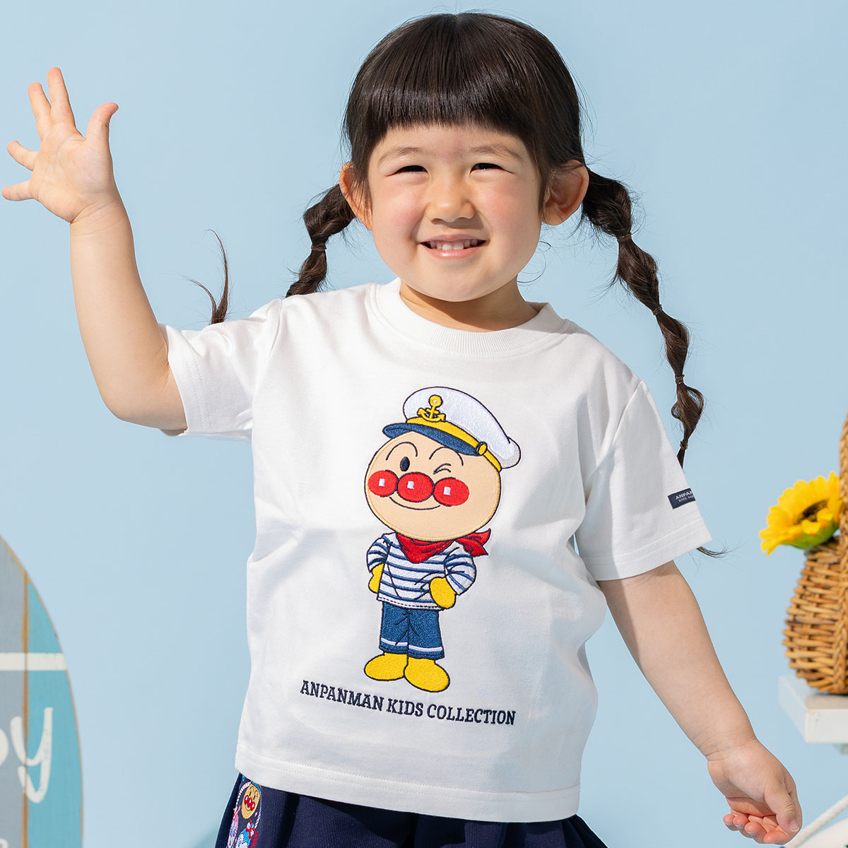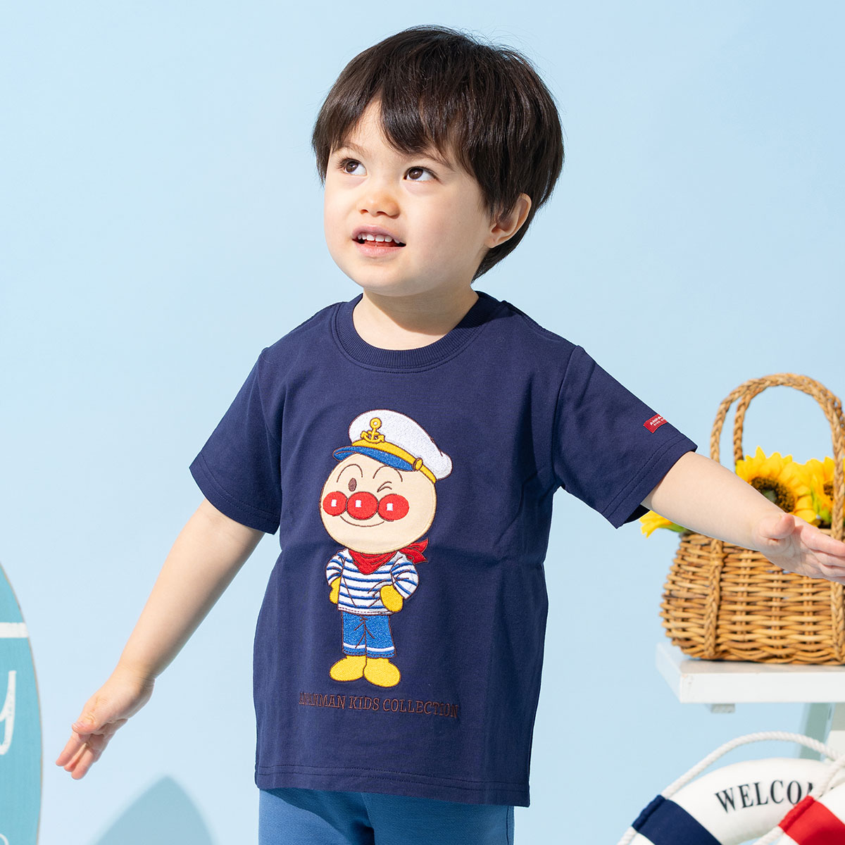 マリンスタイルのアンパンマンが爽やかな半袖Tシャツ。