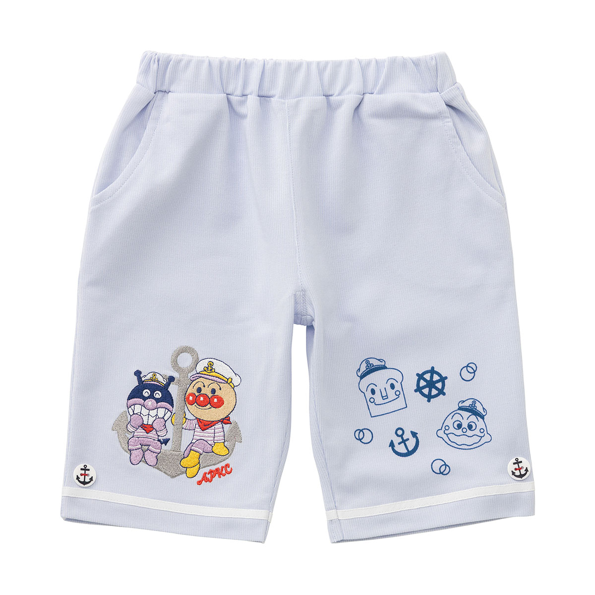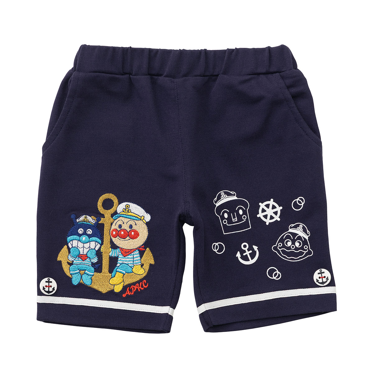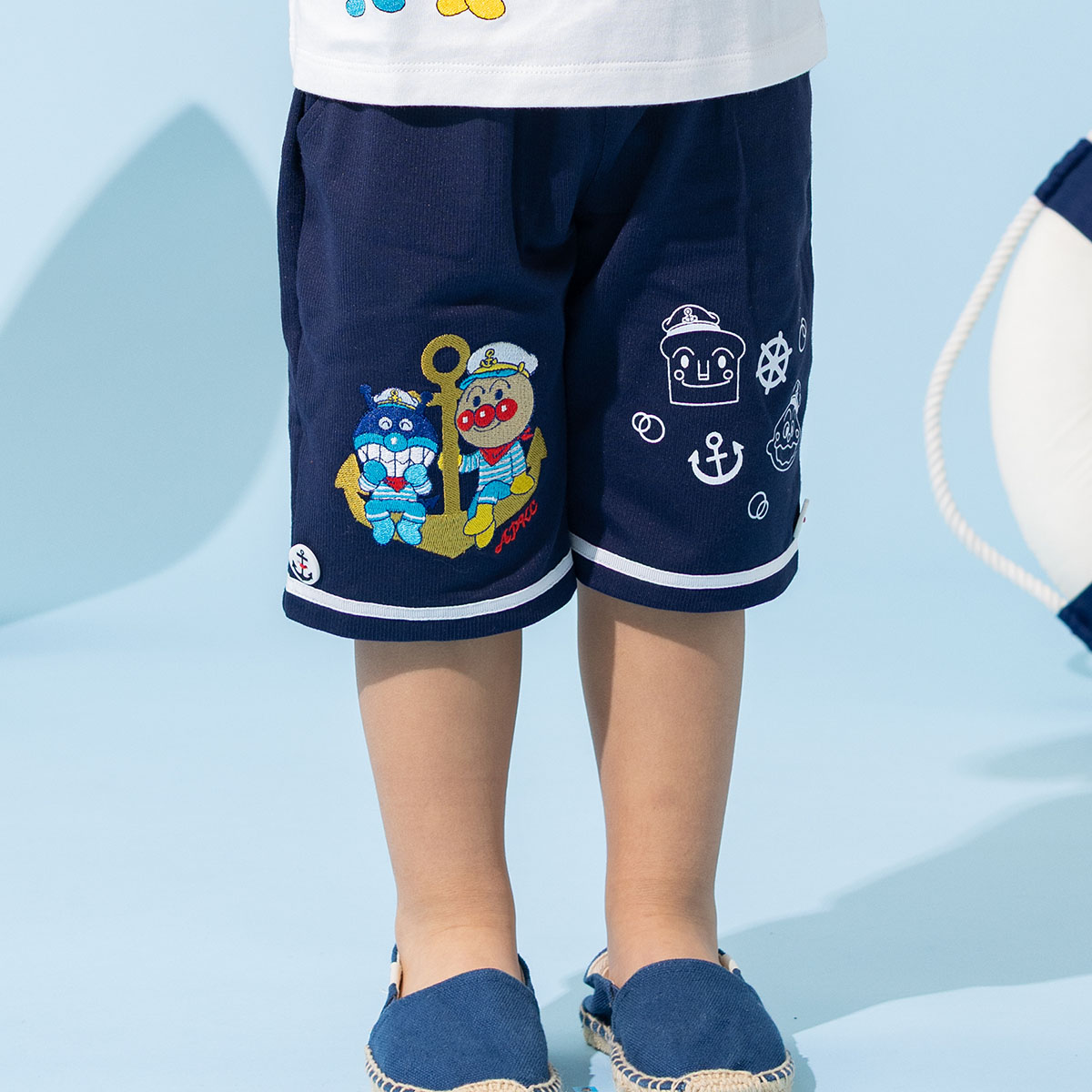 マリン帽を被ったアンパンマンとばいきんまんの刺繍が入ったマリンパンツ。