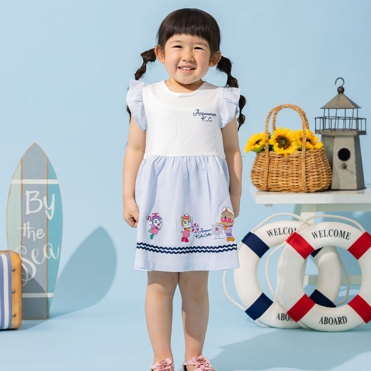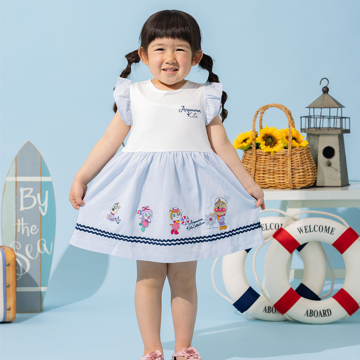マリンスタイルのアンパンマン、ドキンちゃん、コキンちゃん、めいけんチーズはすべて刺繍で表現されています。