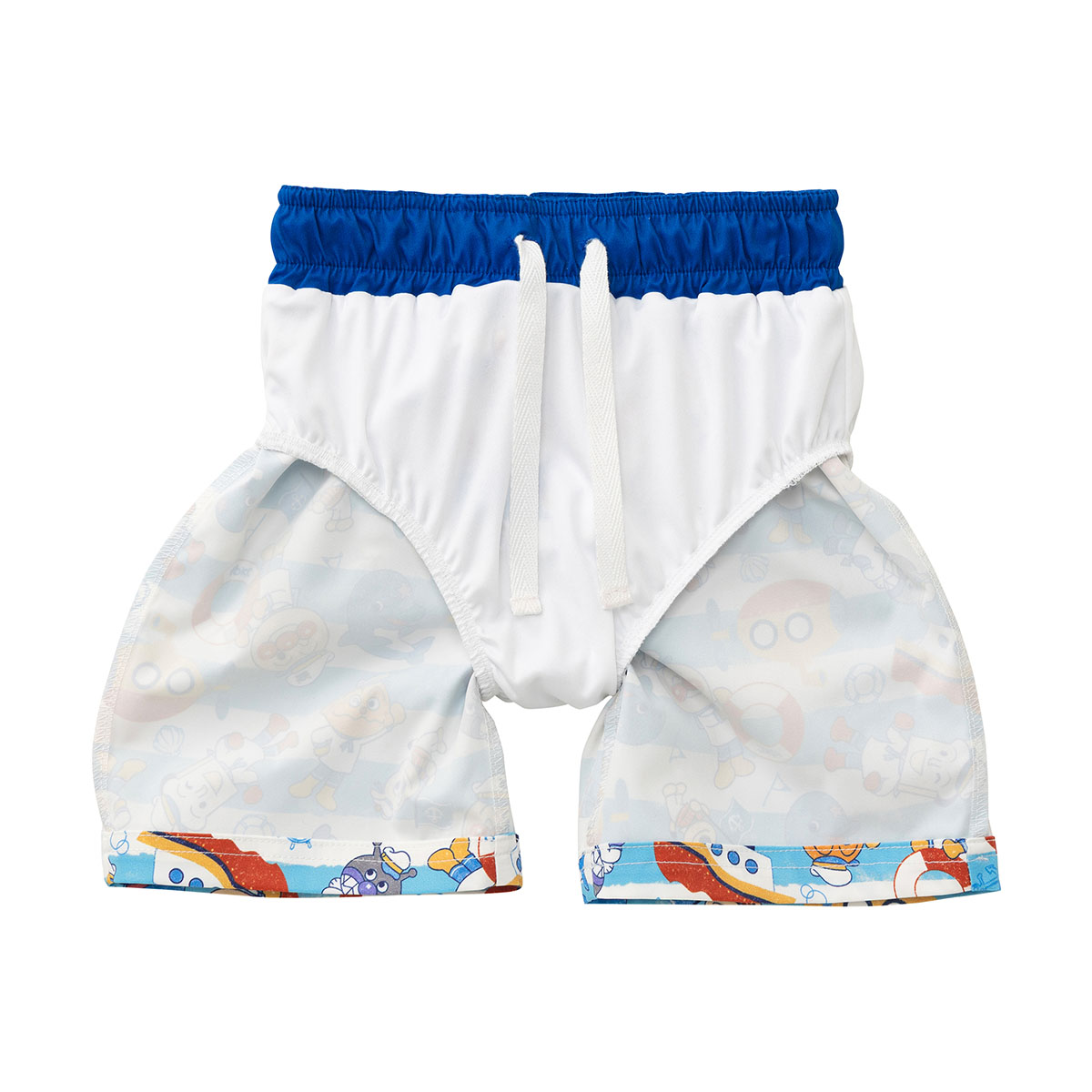 バックのポケット部分のワッペン風プリントデザインもポイント。別売りの「マリン柄ラッシュガード」と合わせてコーディネートしたいアイテムです。