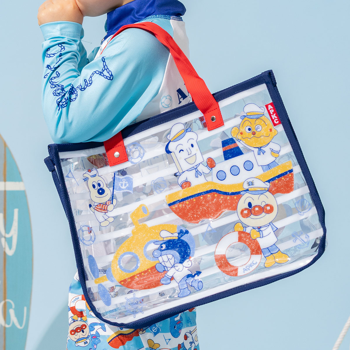 マリンスタイルのアンパンマンたちが爽やかなビーチバッグ。