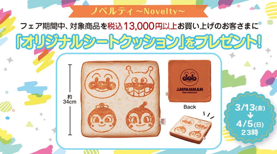 フェア期間中、「アンパンマンキッズコレクション」の店舗にて、13,000円(税込)以上