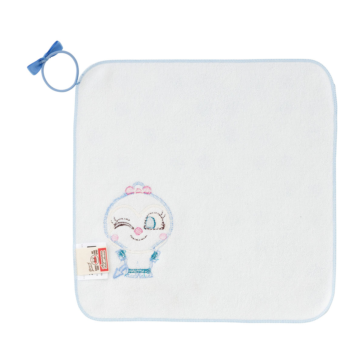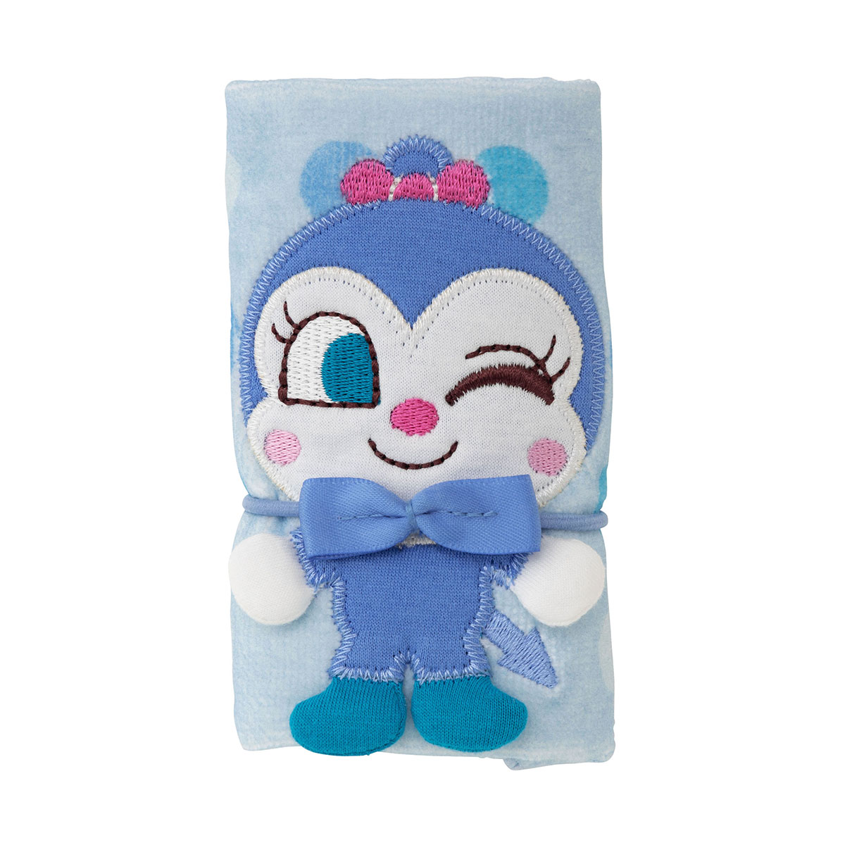 畳んでくるくるっとしてリボンゴムで留めると、コキンちゃんがちょこんとたたずむキュートなタオルです。