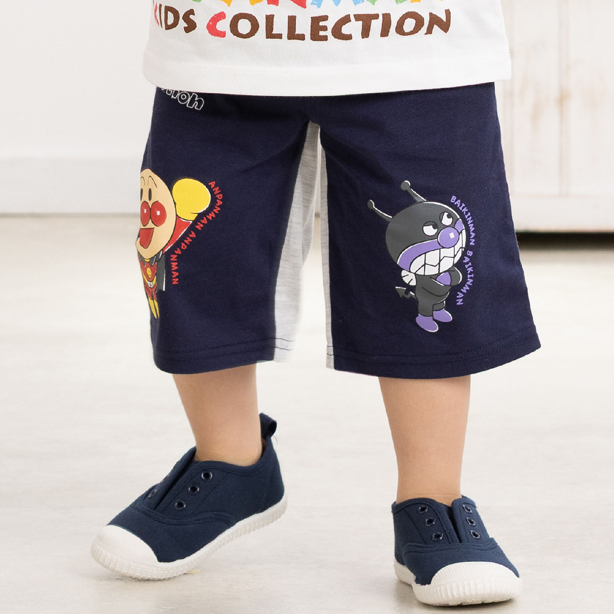 アンパンマンとばいきんまんの大きなプリントがデザインされたクレイジー配色のハーフパンツ!