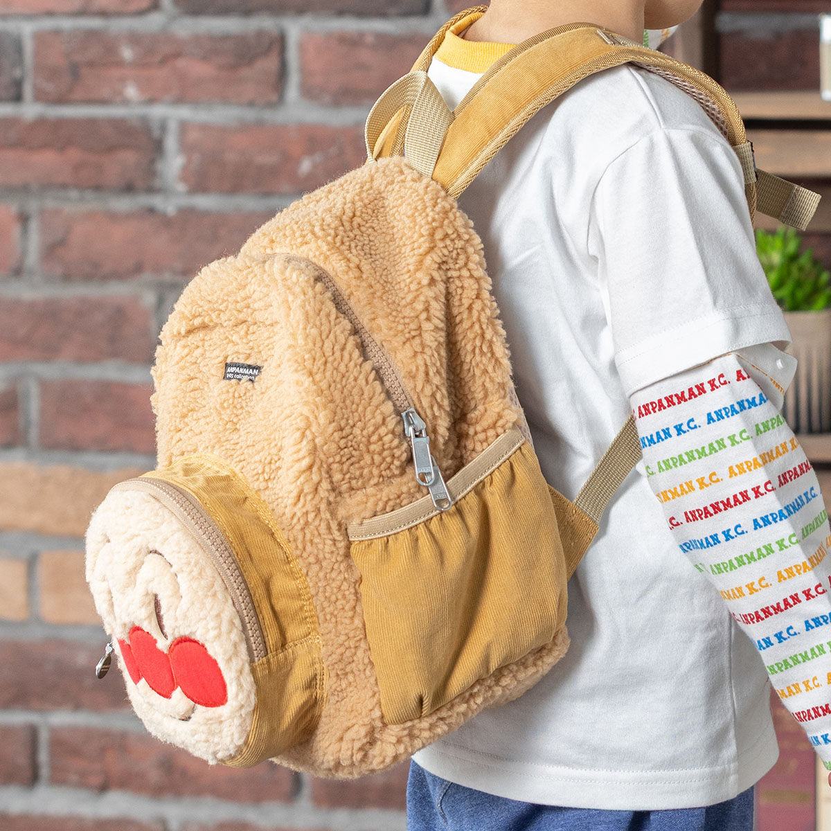 アンパンマンの大きなアップリケ刺繍が可愛いボア素材を使用したリュック♪
