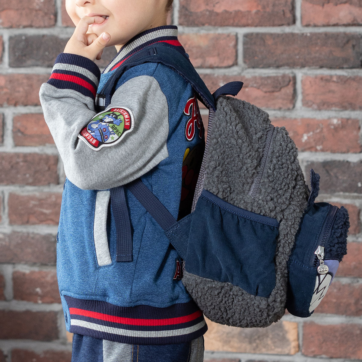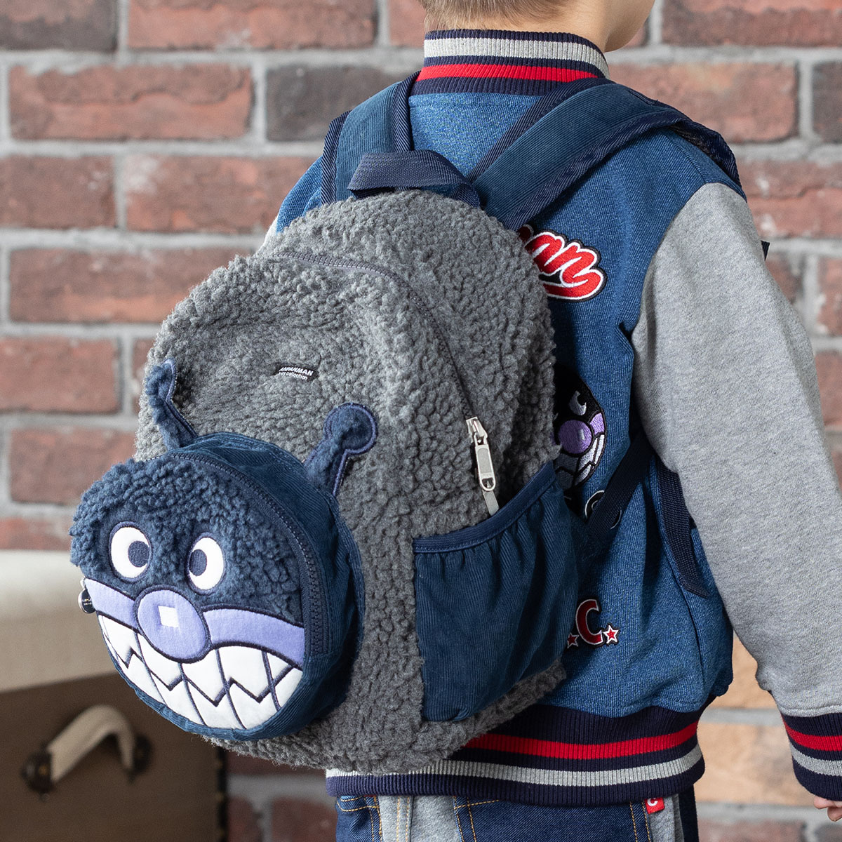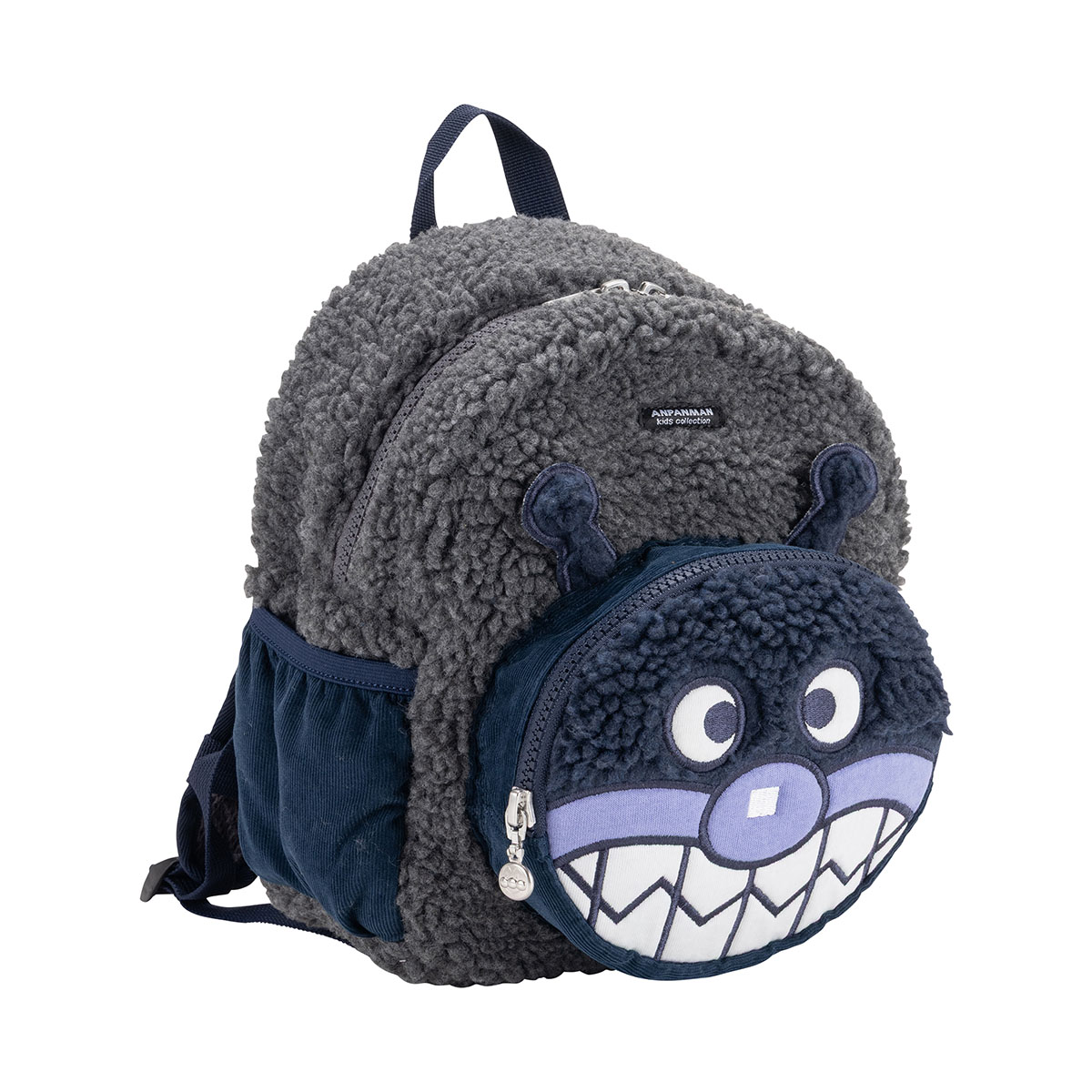 ばいきんまんの大きなアップリケ刺繍が可愛いボア素材を使用したリュック♪
