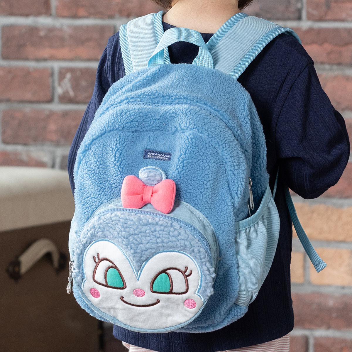 コキンちゃんの大きなアップリケ刺繍が可愛いボア素材を使用したリュック♪