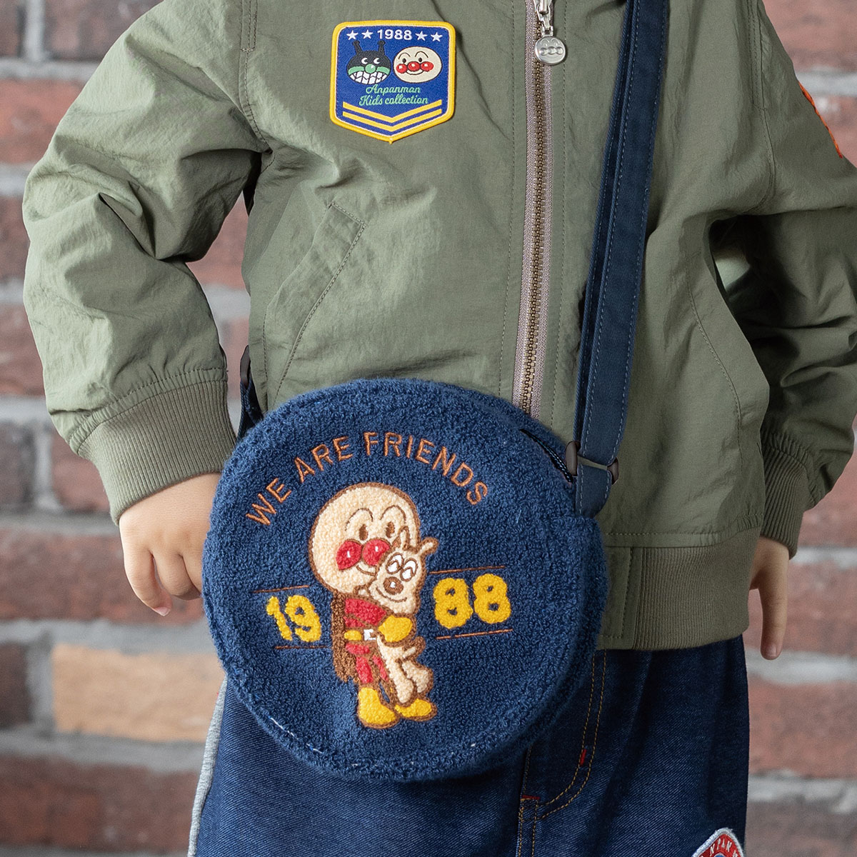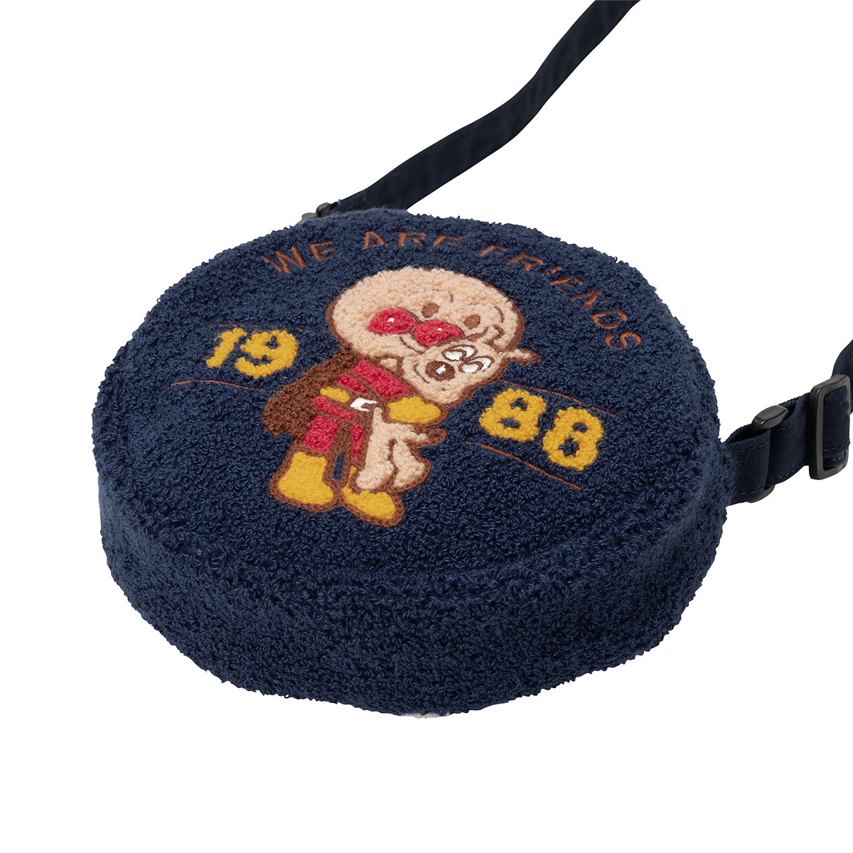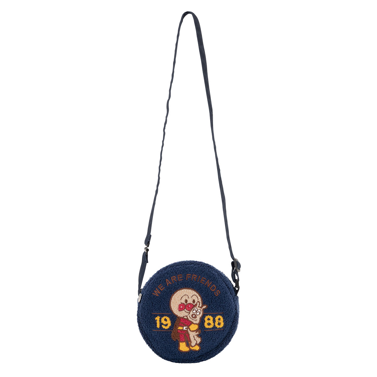 アンパンマンとめいけんチーズがハグしたデザインが目を惹くポシェットです。
