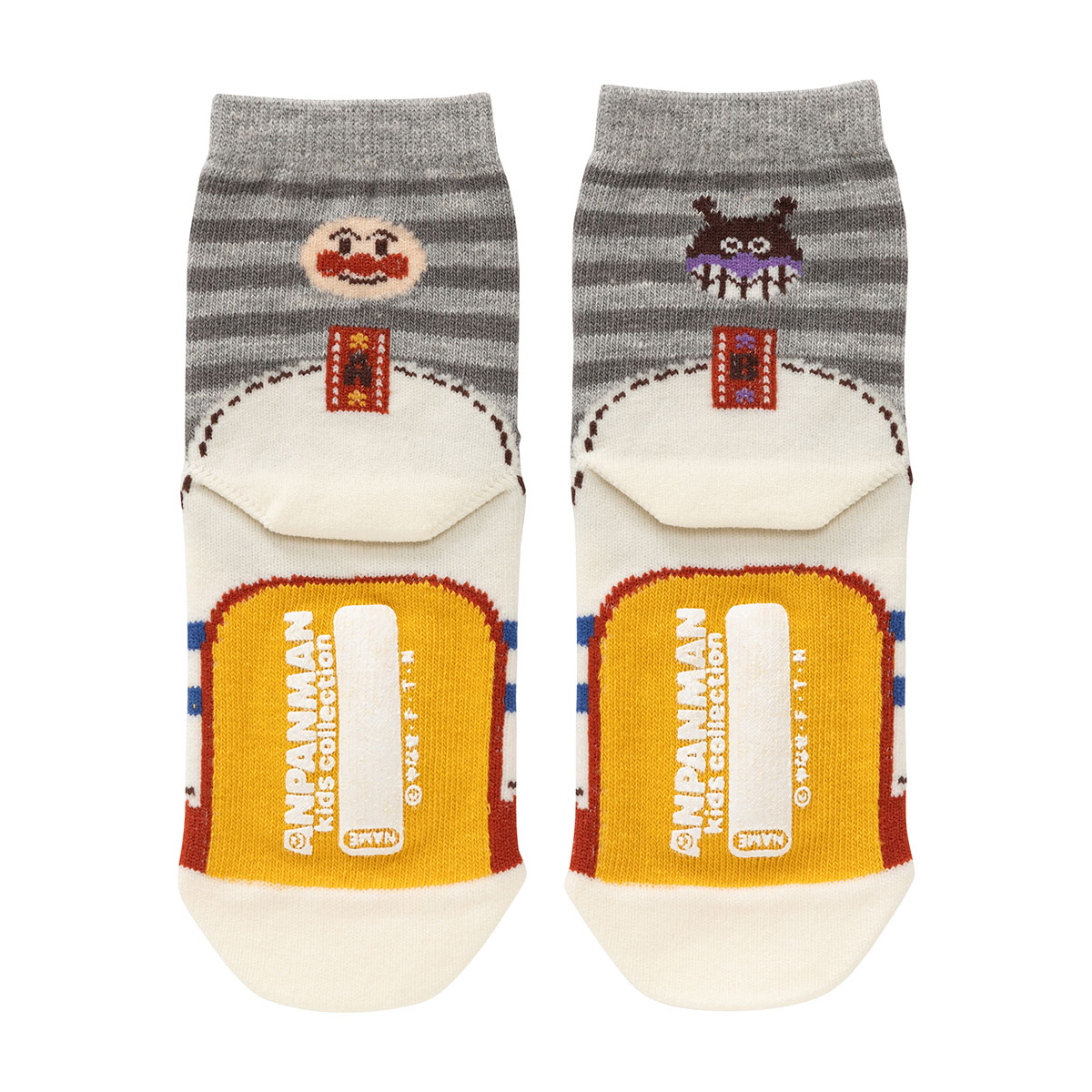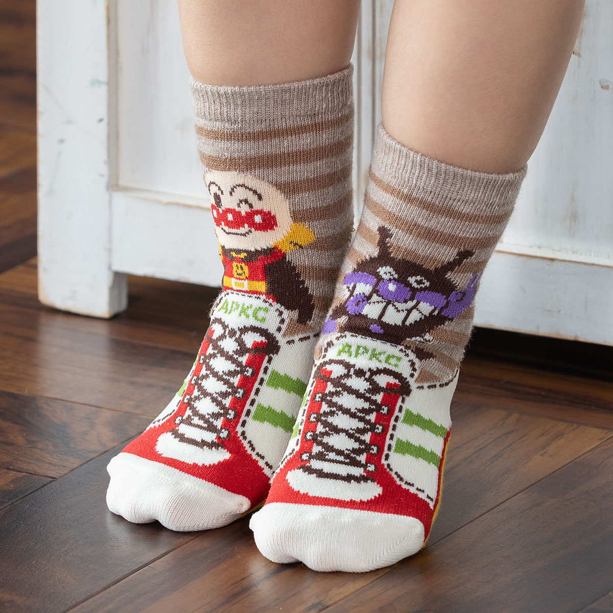 アンパンマンとばいきんまんのお顔が左右にそれぞれデザインされたソックスです。