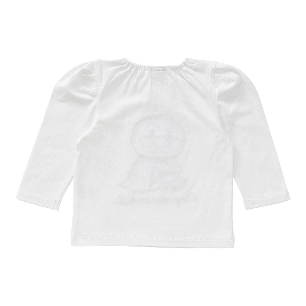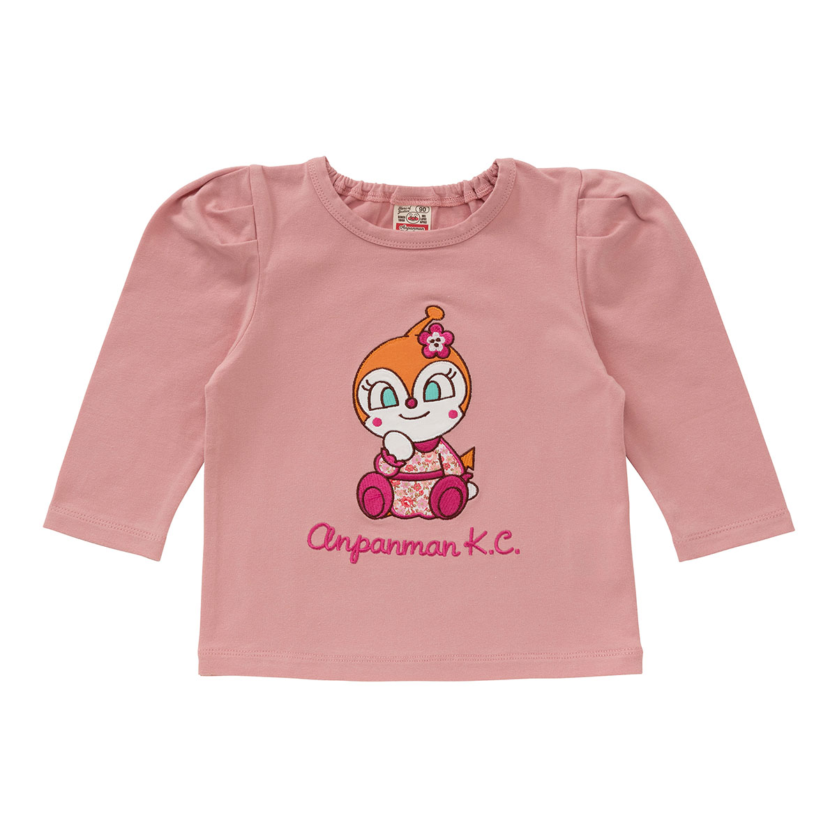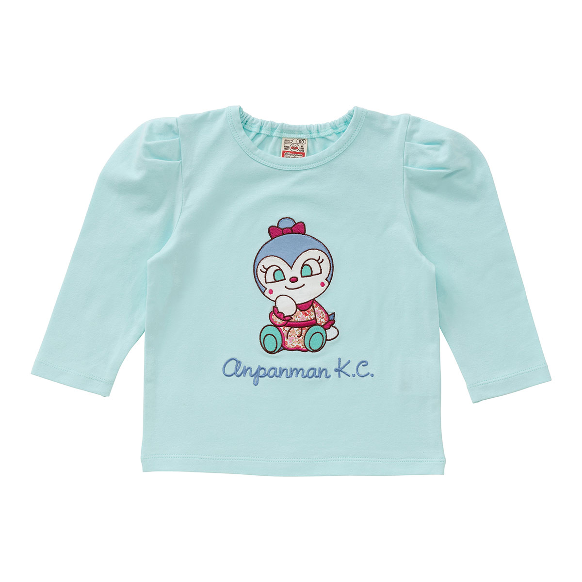 胸元にはアンパンマン・ドキンちゃん・コキンちゃんがお座りしたデザインの大きなアップリケが施されています。