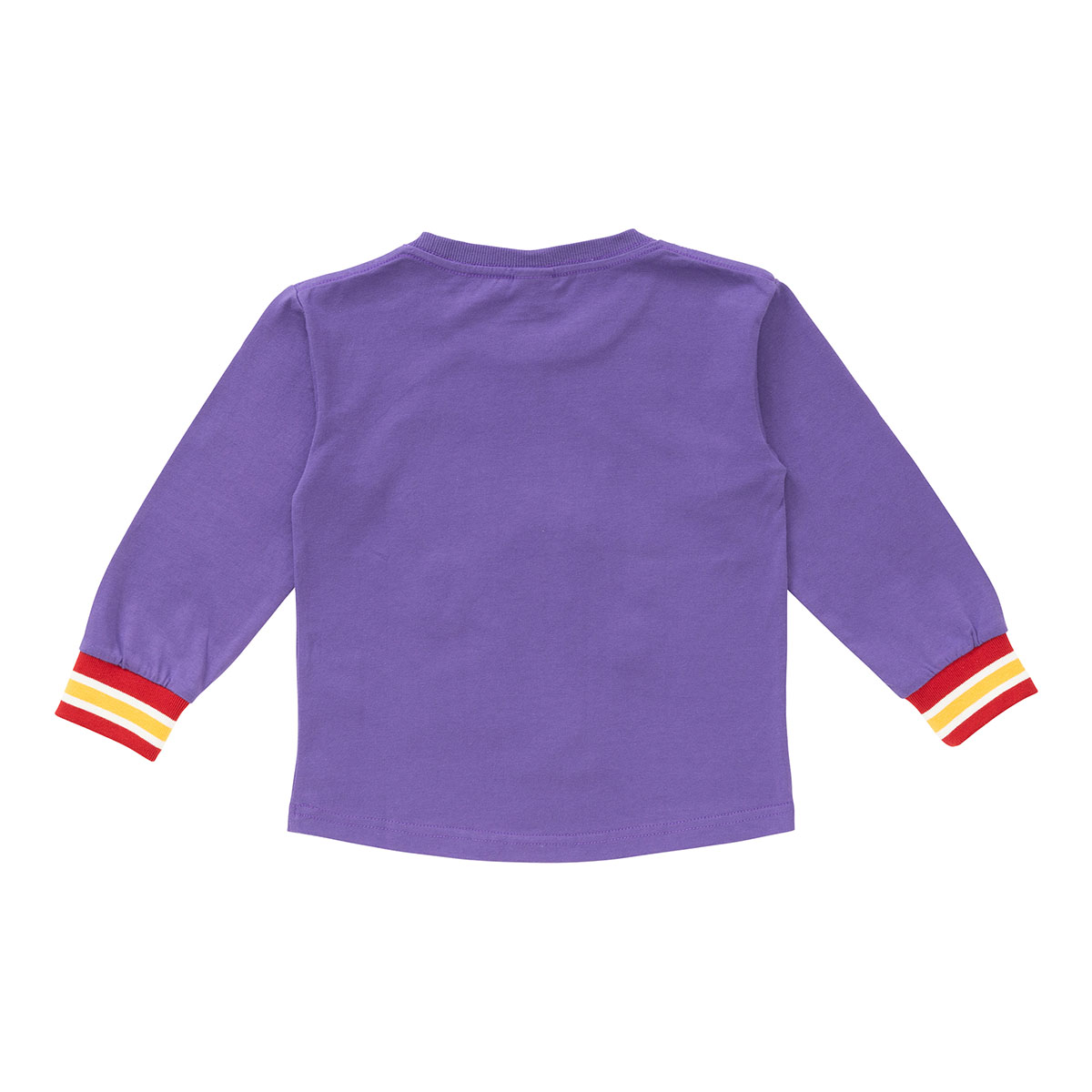 袖口にはカラフルなリブを取り入れ、ポップな印象に。