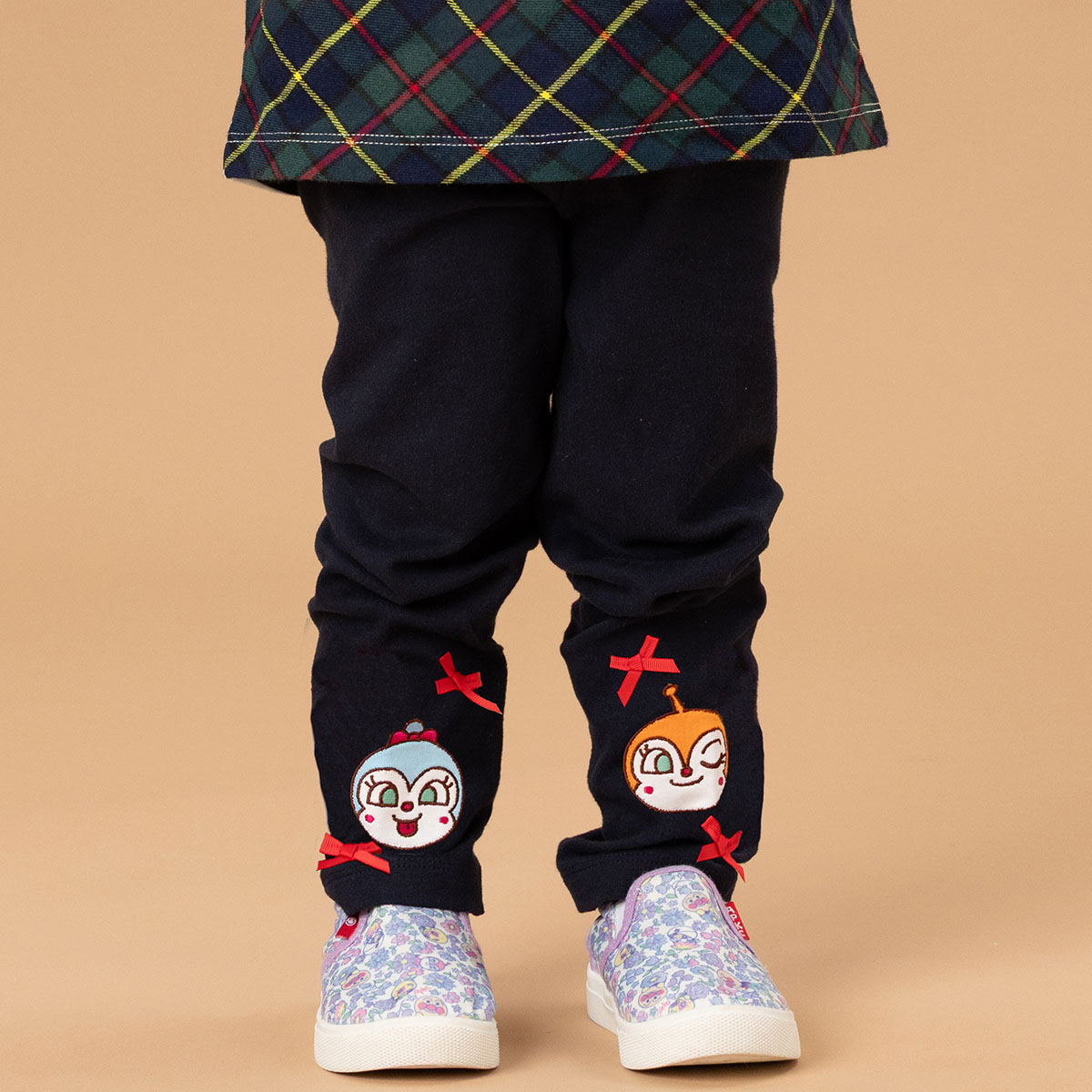 お顔のアップリケが可愛いチェックポケット付きレギンスパンツ!