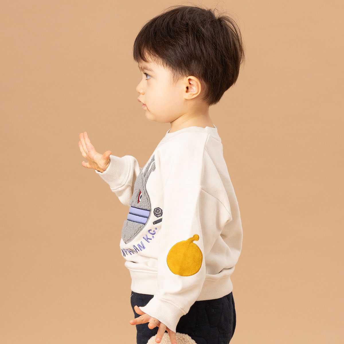 ボアのお顔アップリケとシルエットのパッチが豪華で可愛いトレーナー!