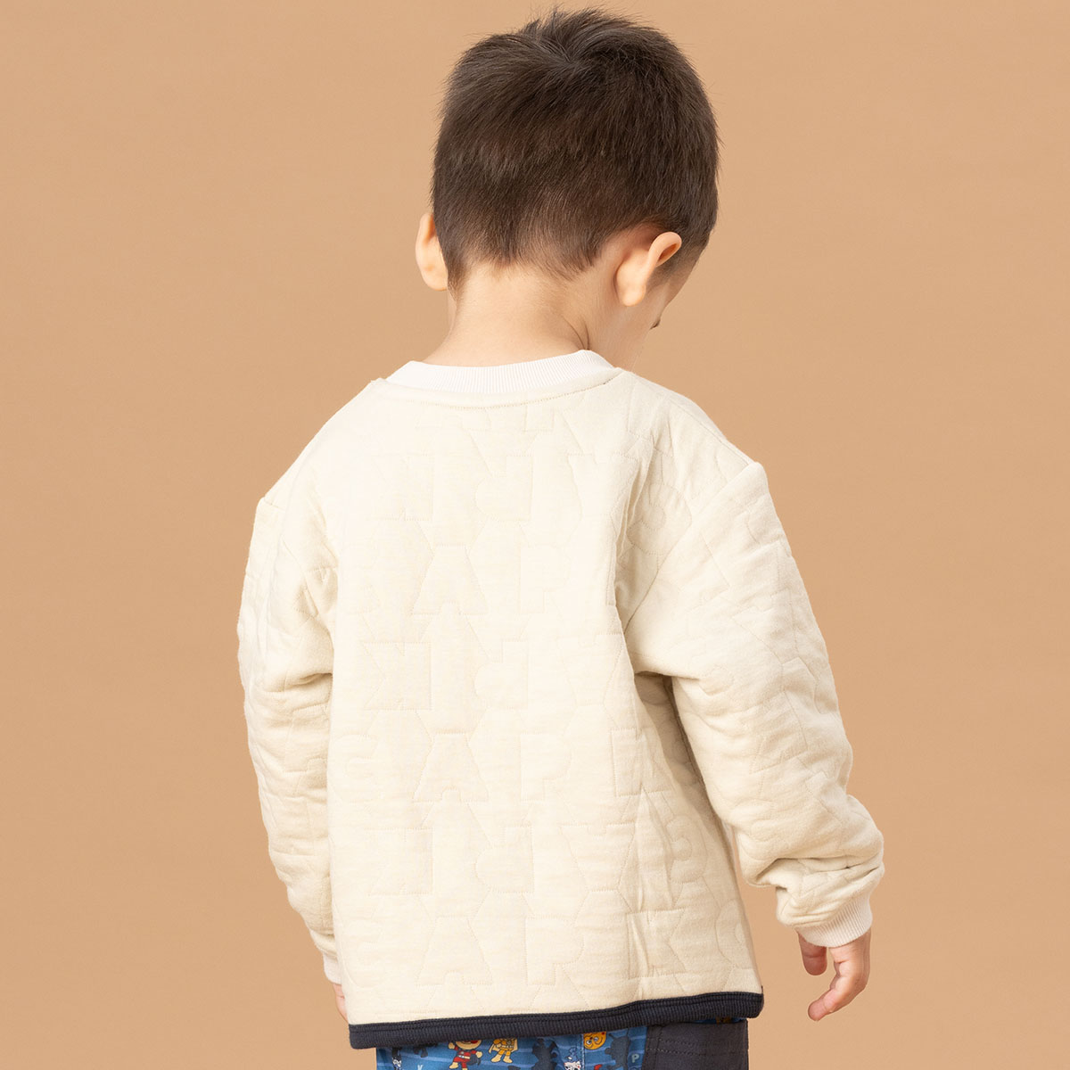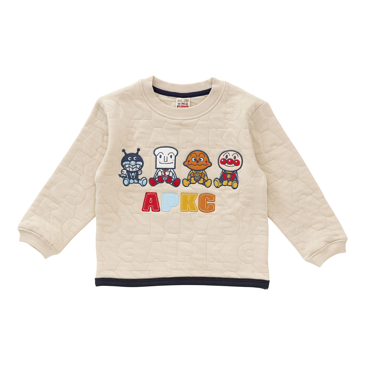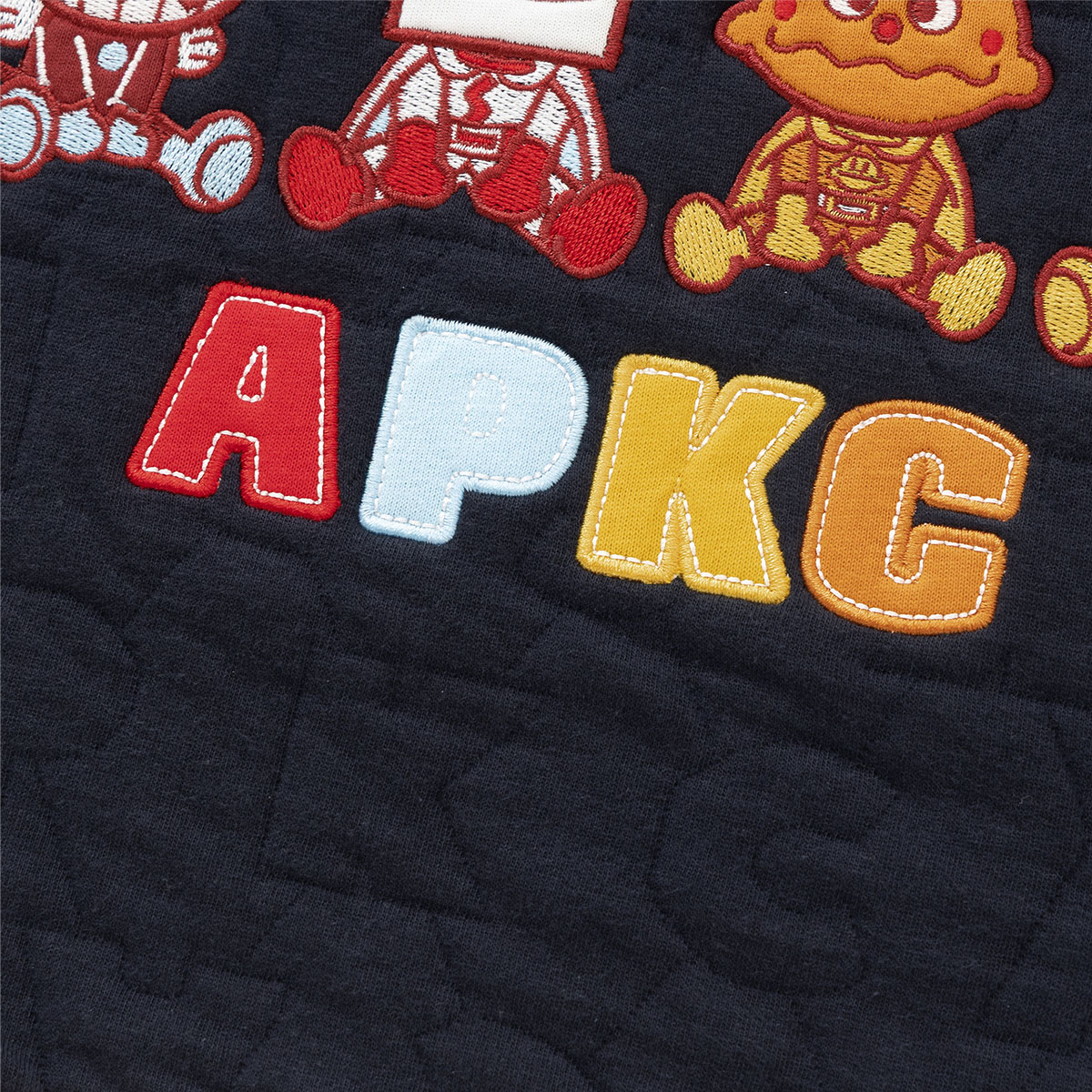 APKCのアルファベットロゴ柄のキルト生地を使用した豪華で凝ったトレーナーです。
