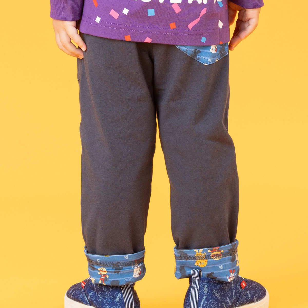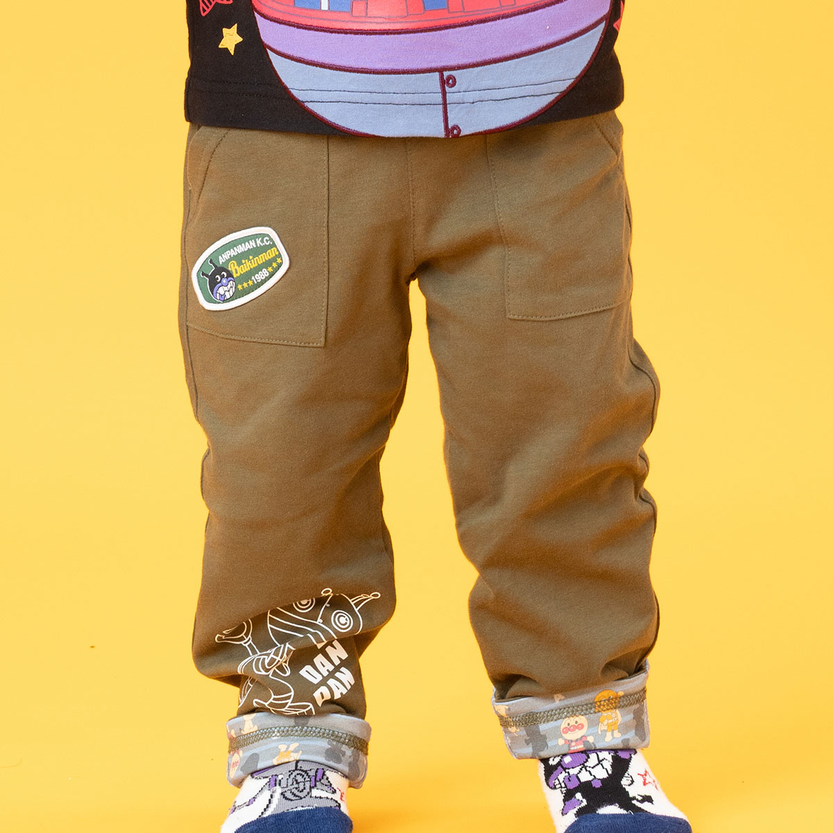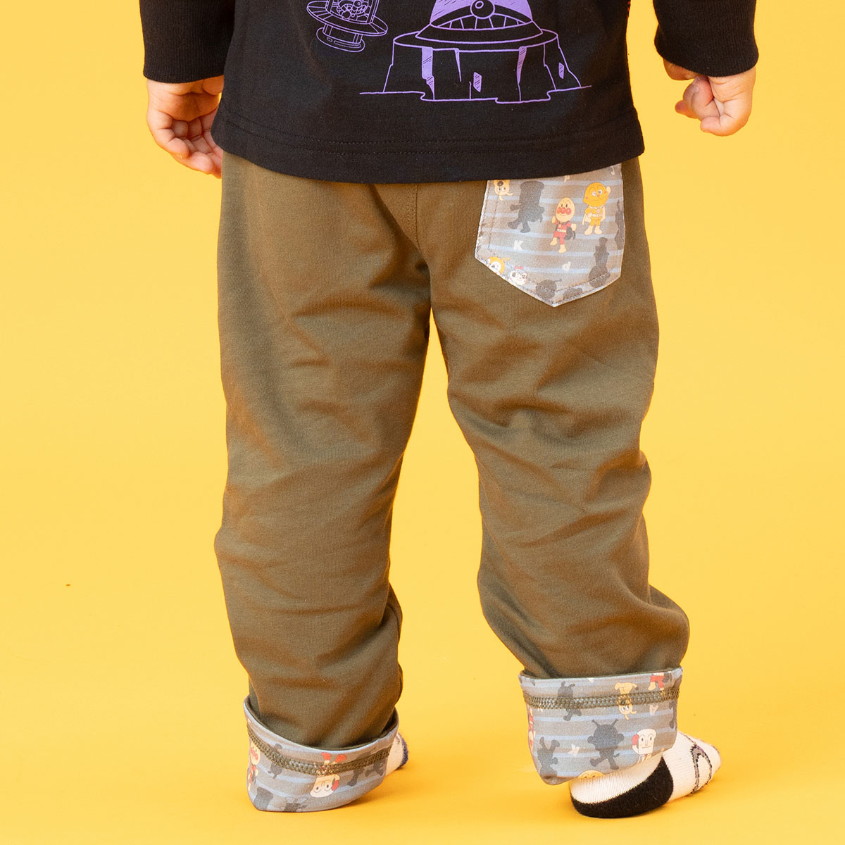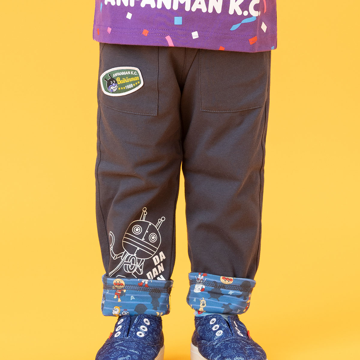 無地の面は左ポケットからひょっこり顔を出したアンパンマンが刺繍されており、右裾にはだだんだんがプリントされています。