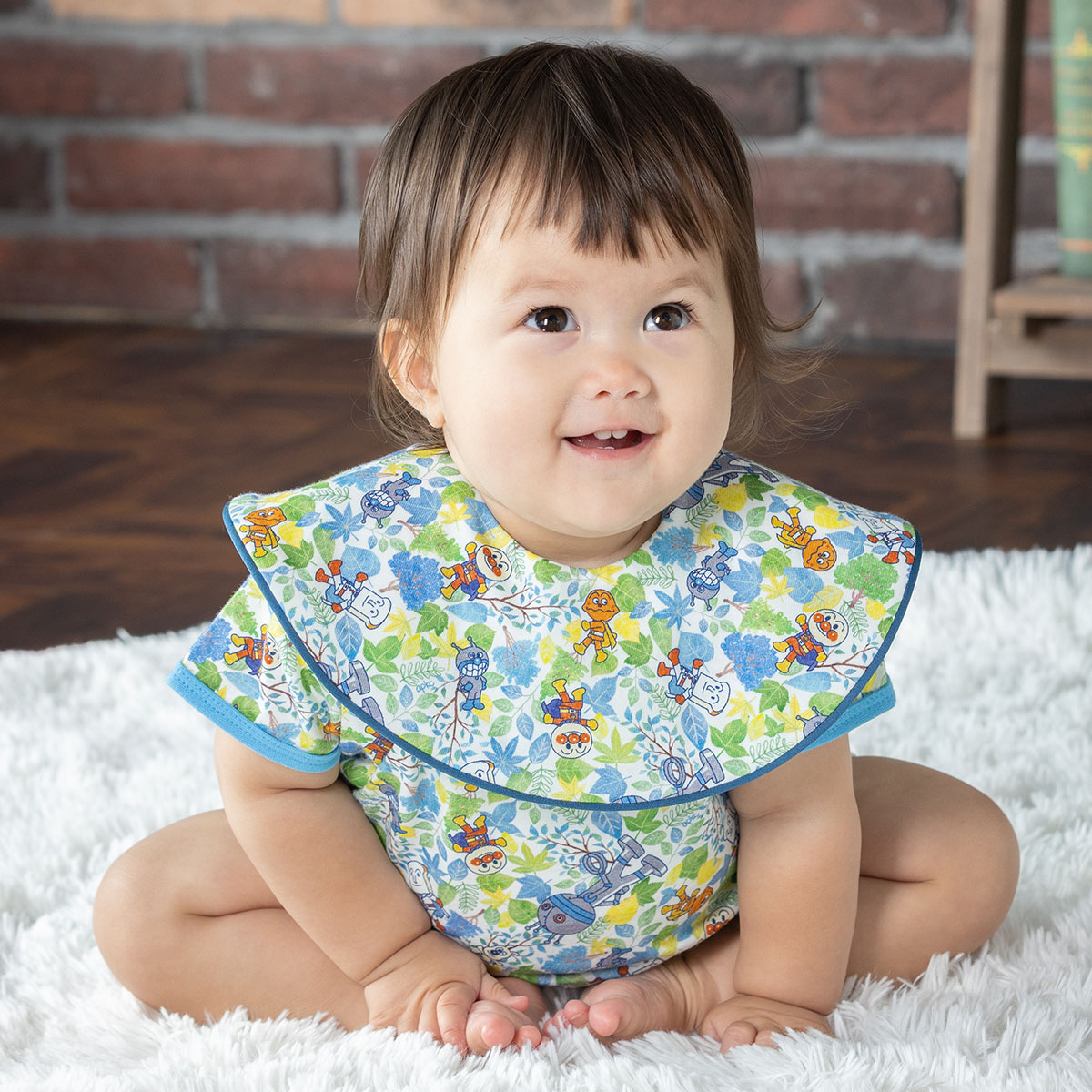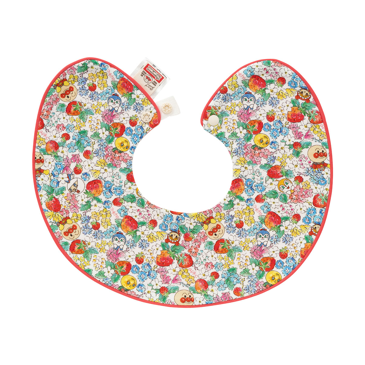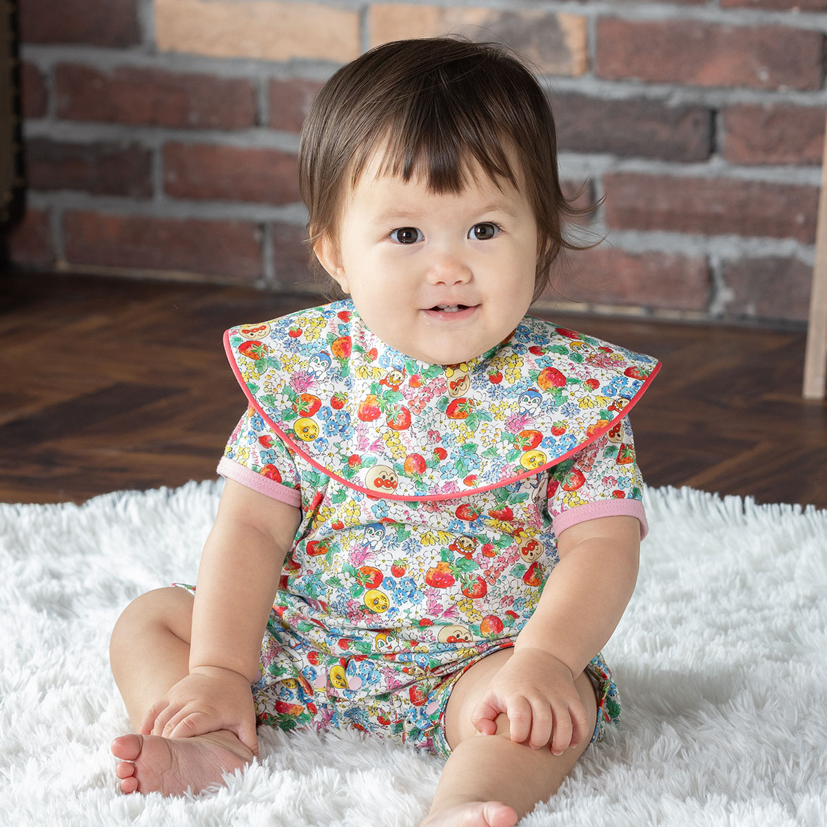 アンパンマンやあかちゃんまんたちがいちごやお花に囲まれた可愛らしいいちご総柄と、アンパンマンやばいきんまんたちが葉っぱに囲まれた爽やかなリーフ総柄の2種類のデザインです。