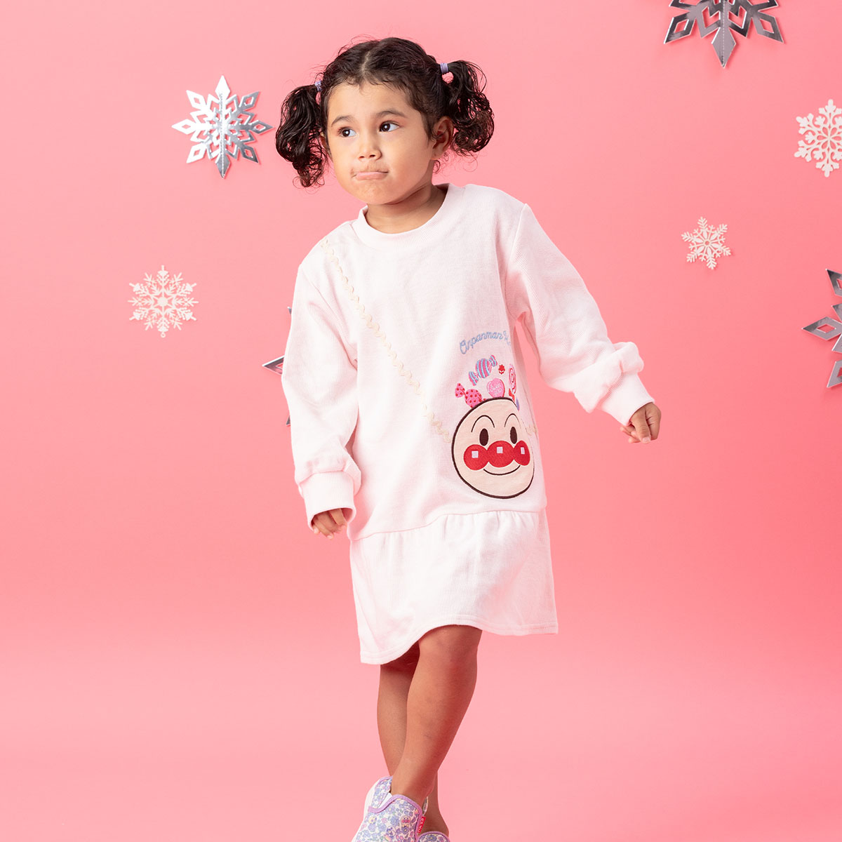 アンパンマンのポシェット風デザインがかわいいワンピース。