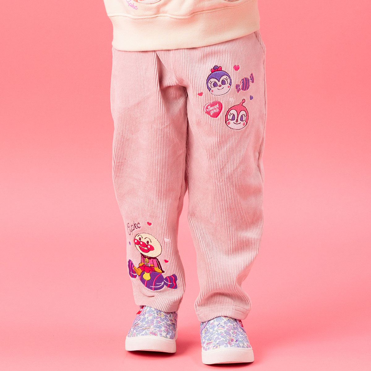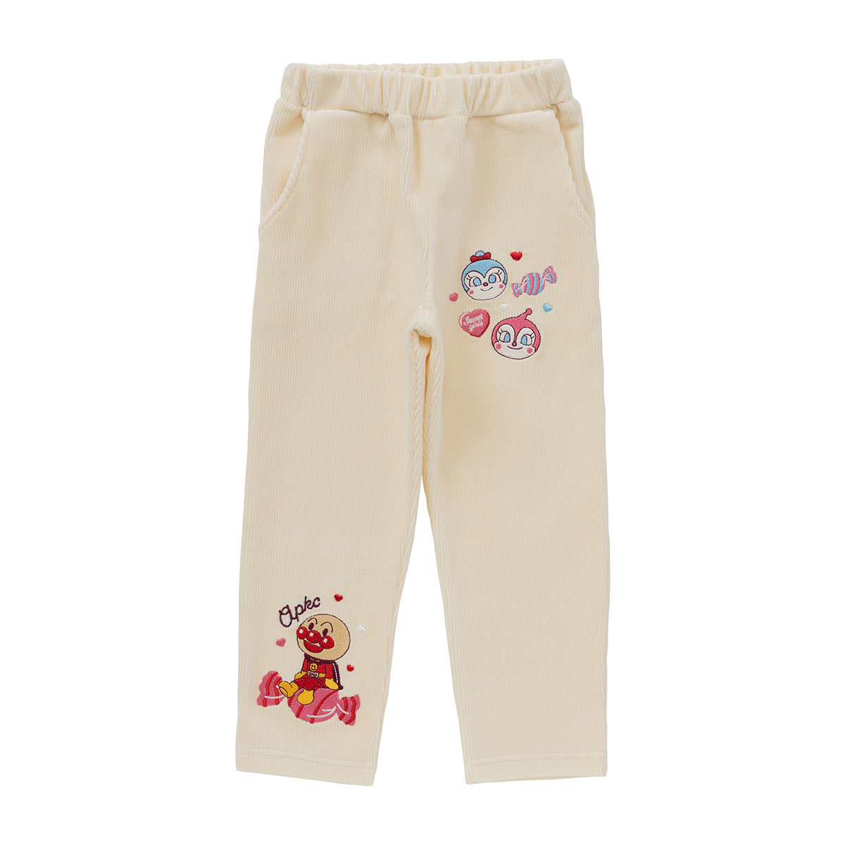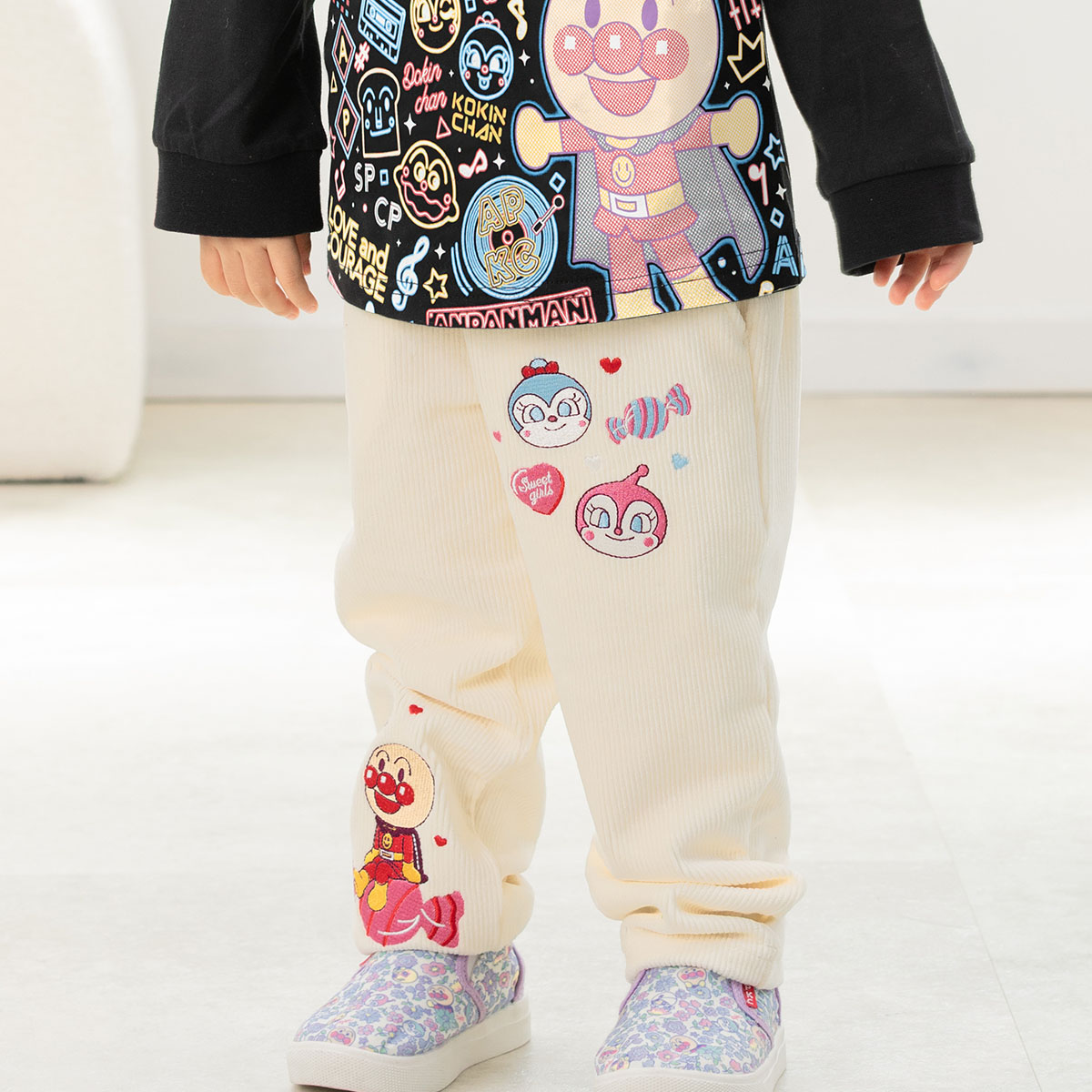 キャンディに座ったアンパンマンとドキンちゃん、コキンちゃんがかわいい上品なニットコールパンツ。