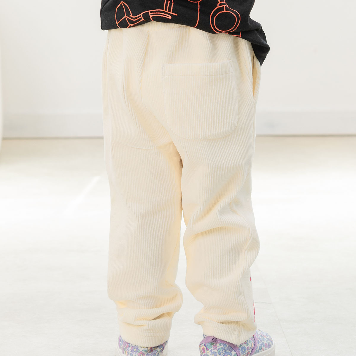 太めのシルエットに、ストレッチ性に優れたニットコールを使用し、元気なお子様にうれしい冬でも動きやすいボトムです。