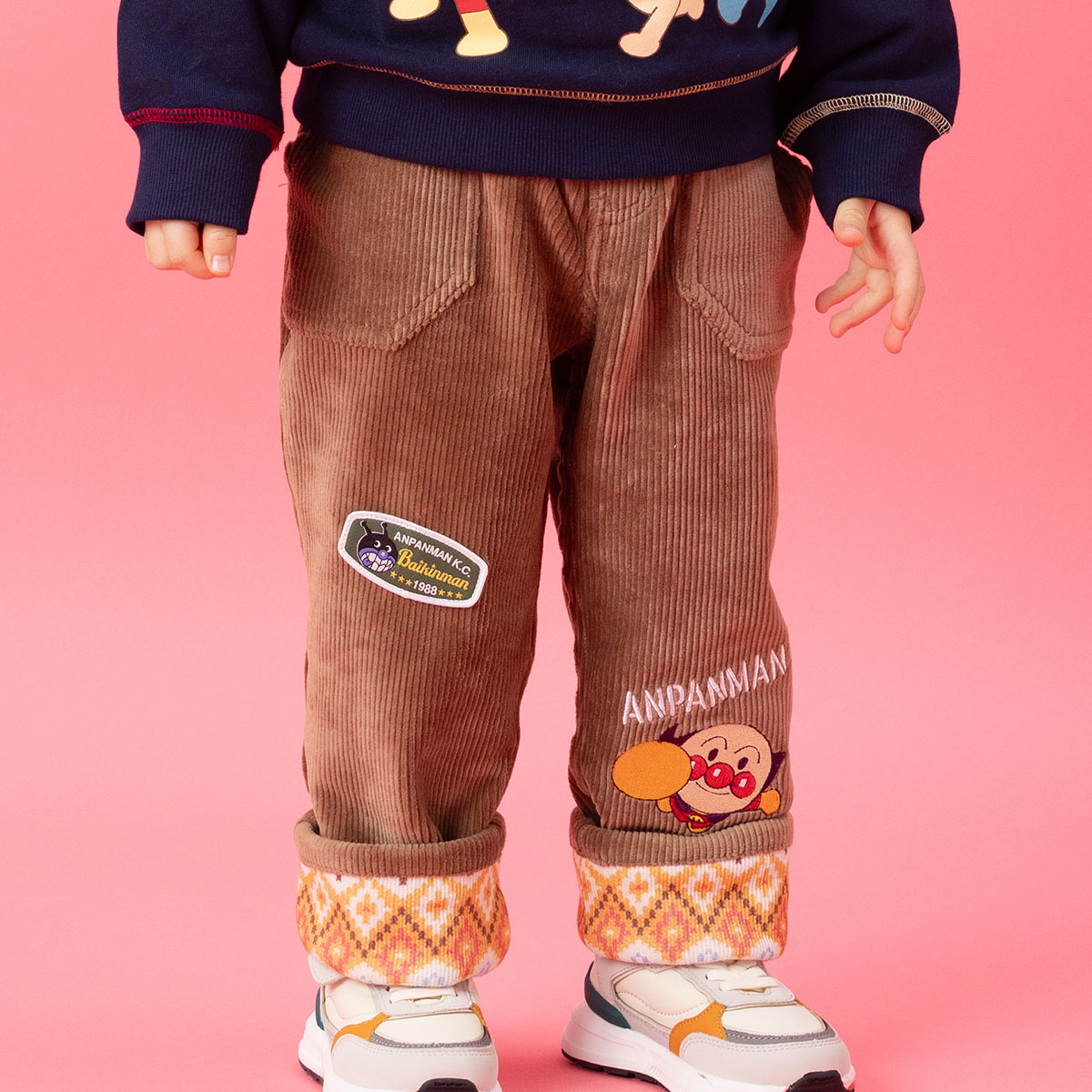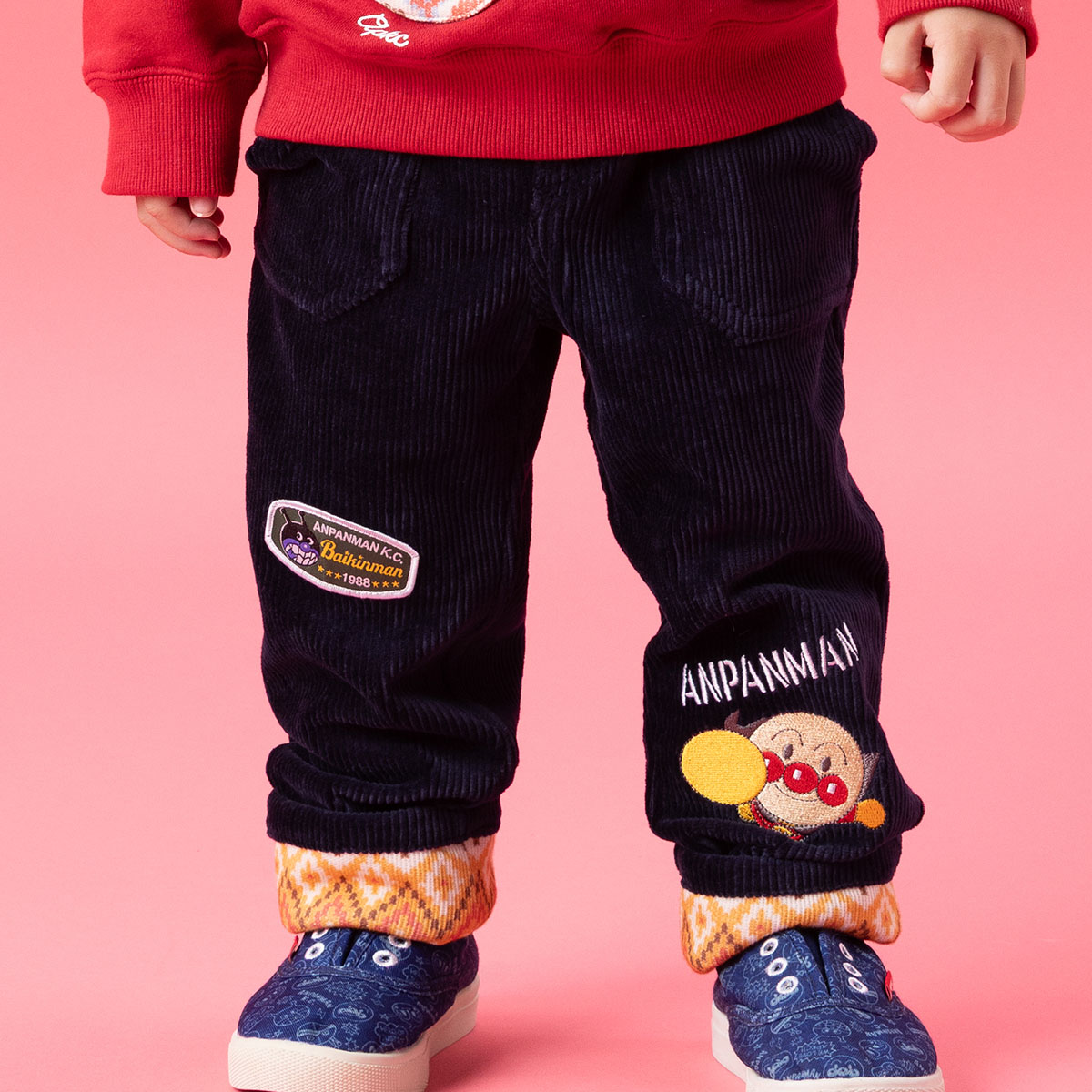アンパンマンは刺繍で表現され、ばいきんまんのワッペンも付いています。