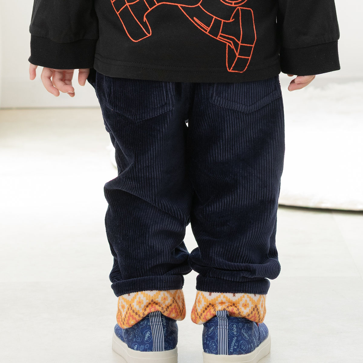 裾折り返し仕様で丈を調節できるので、お子様の成長に合わせて長く着用いただけます。