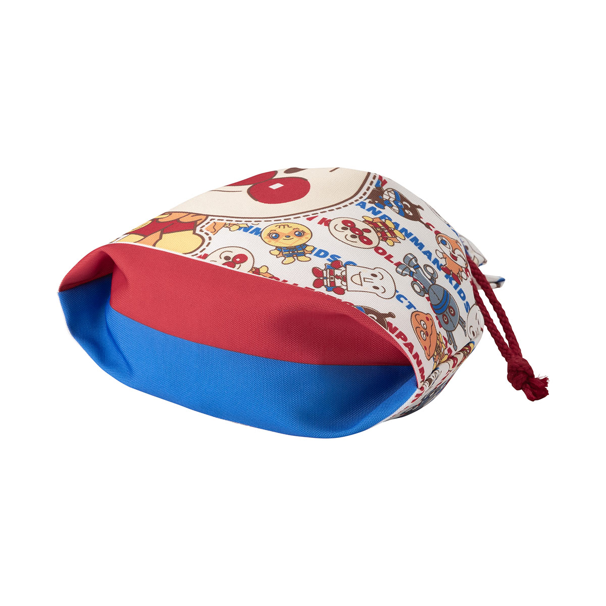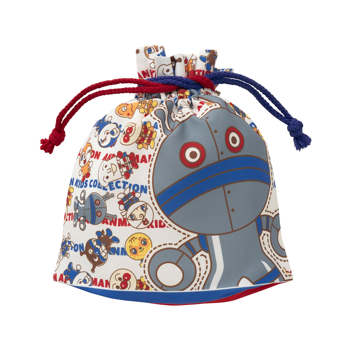 片面はアンパンマン、もう片面はだだんだんが大きくデザインされ、背景はちびちびサイズのなかまたちがたくさん総柄風に散りばめられています。