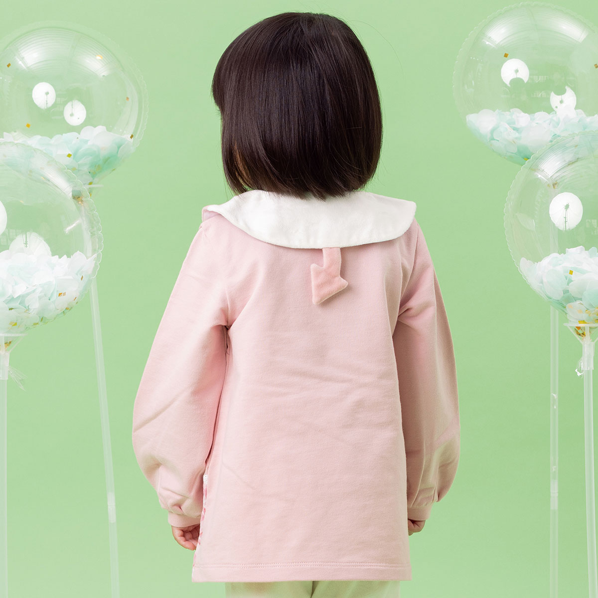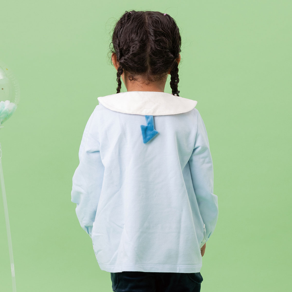 襟の前側にはお顔アップリケ、後ろ側にはしっぽがついています。