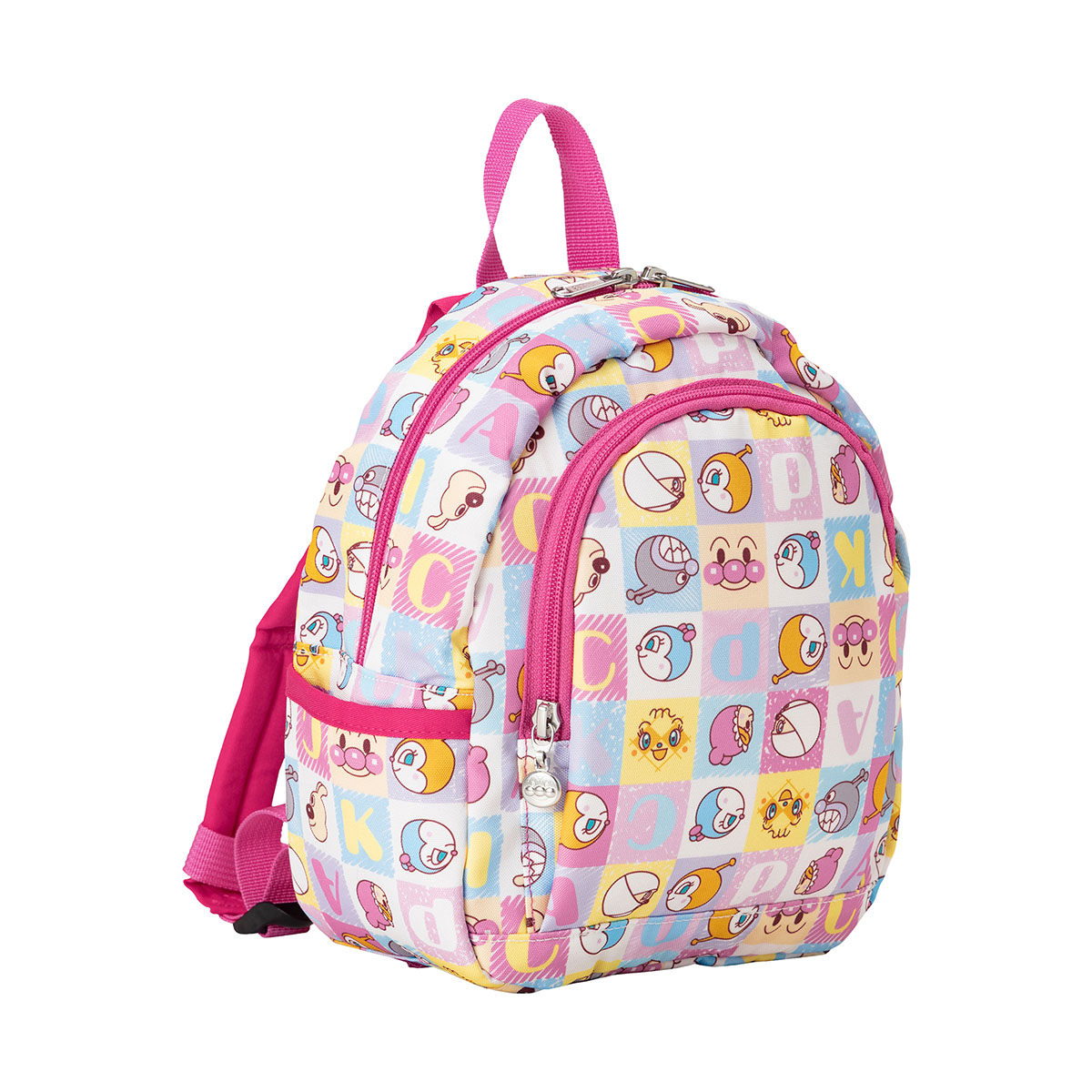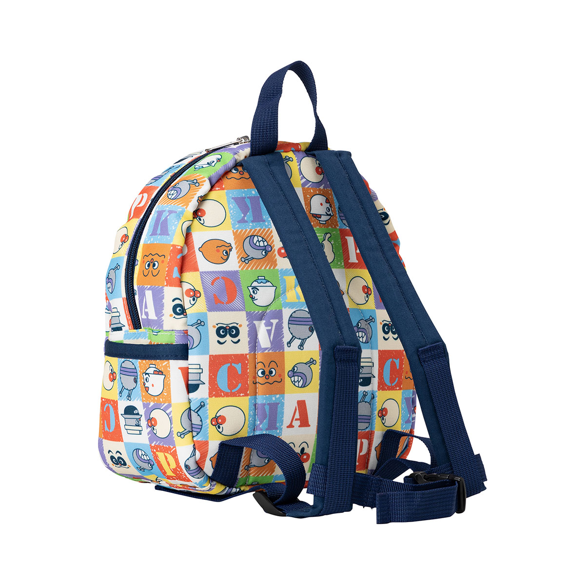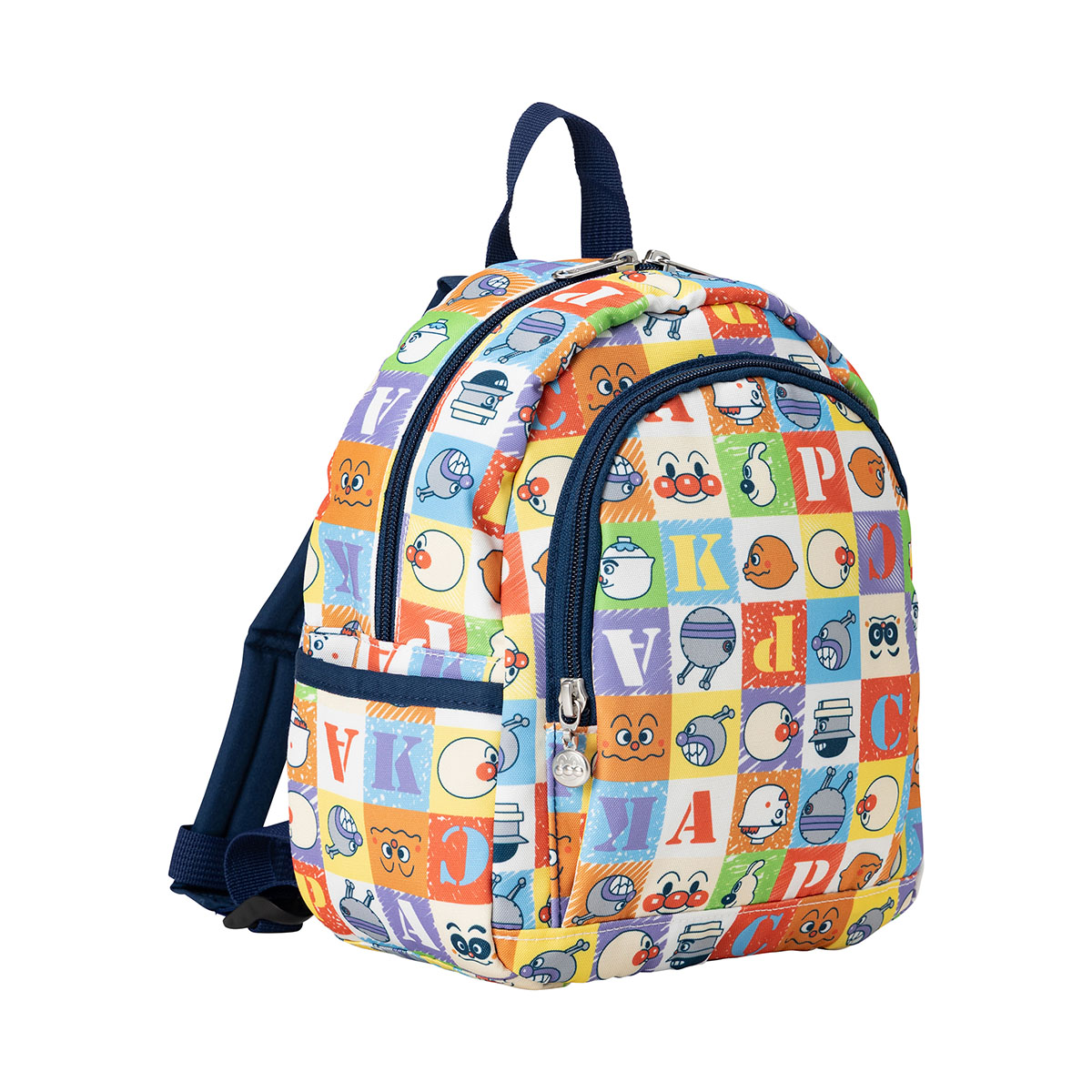 アンパンマンとなかまたちのいろんなお顔がカラフルなブロック風にデザインされた総柄のリュック♪