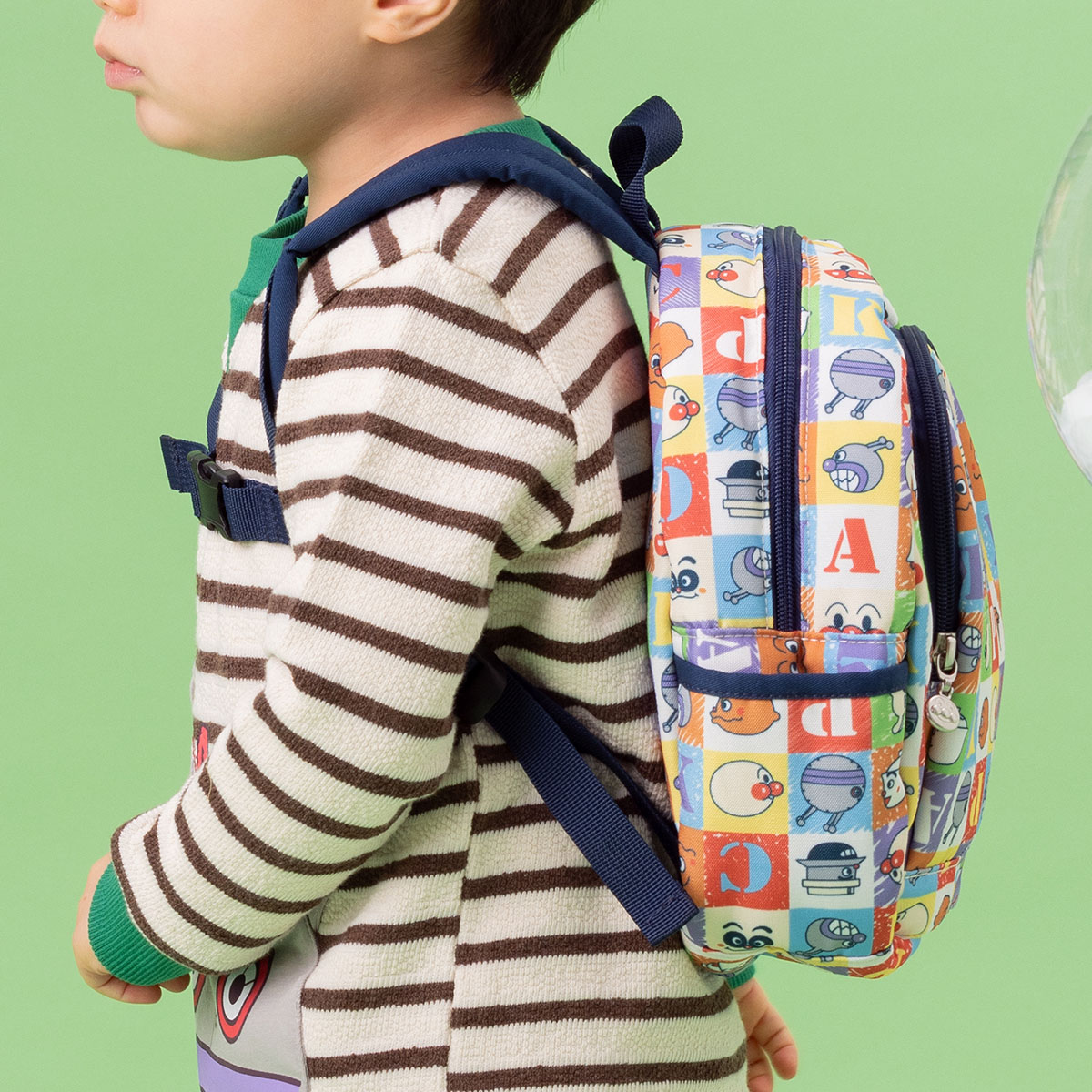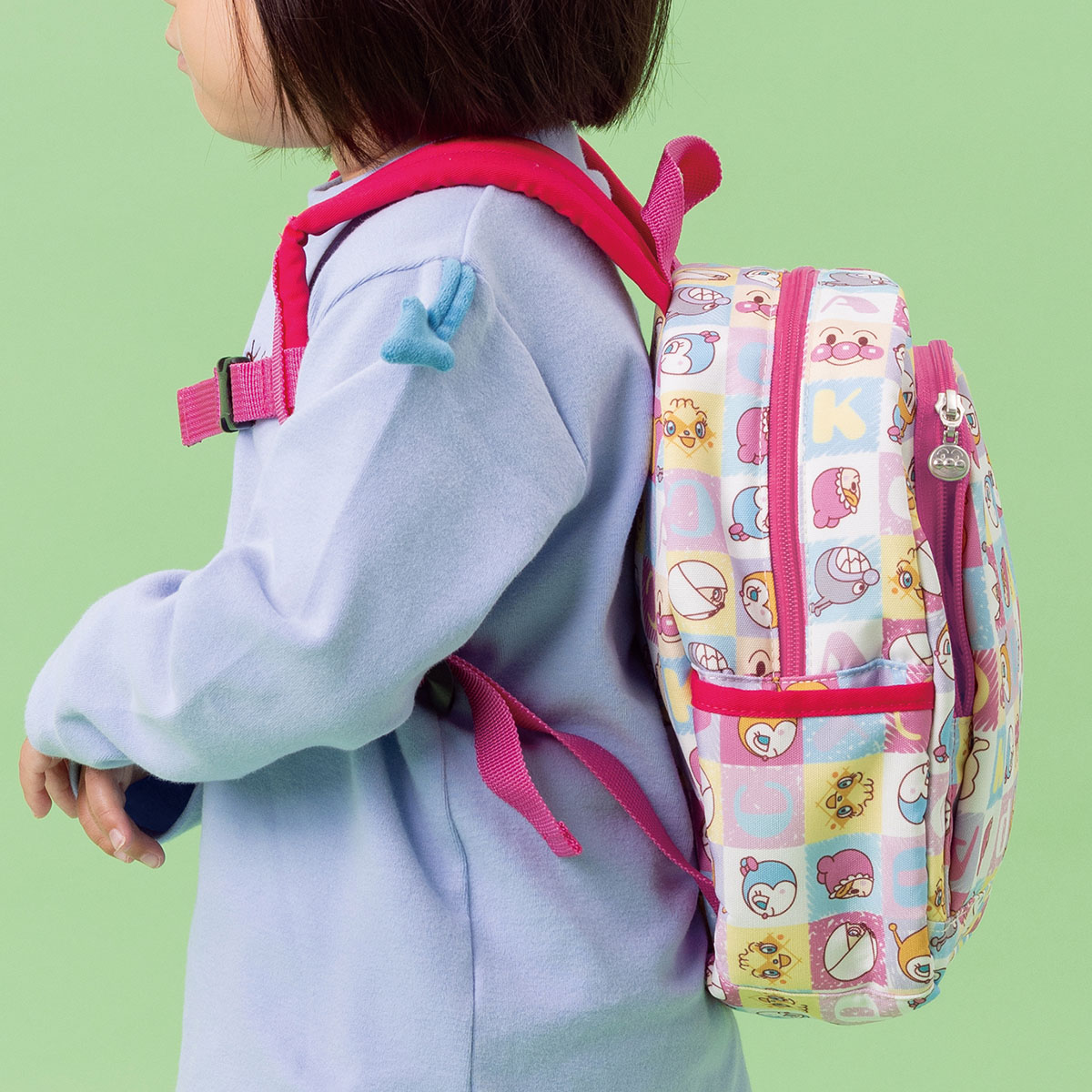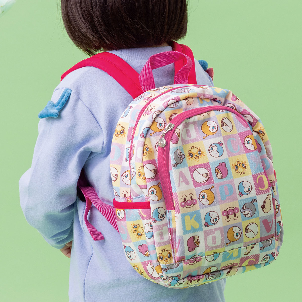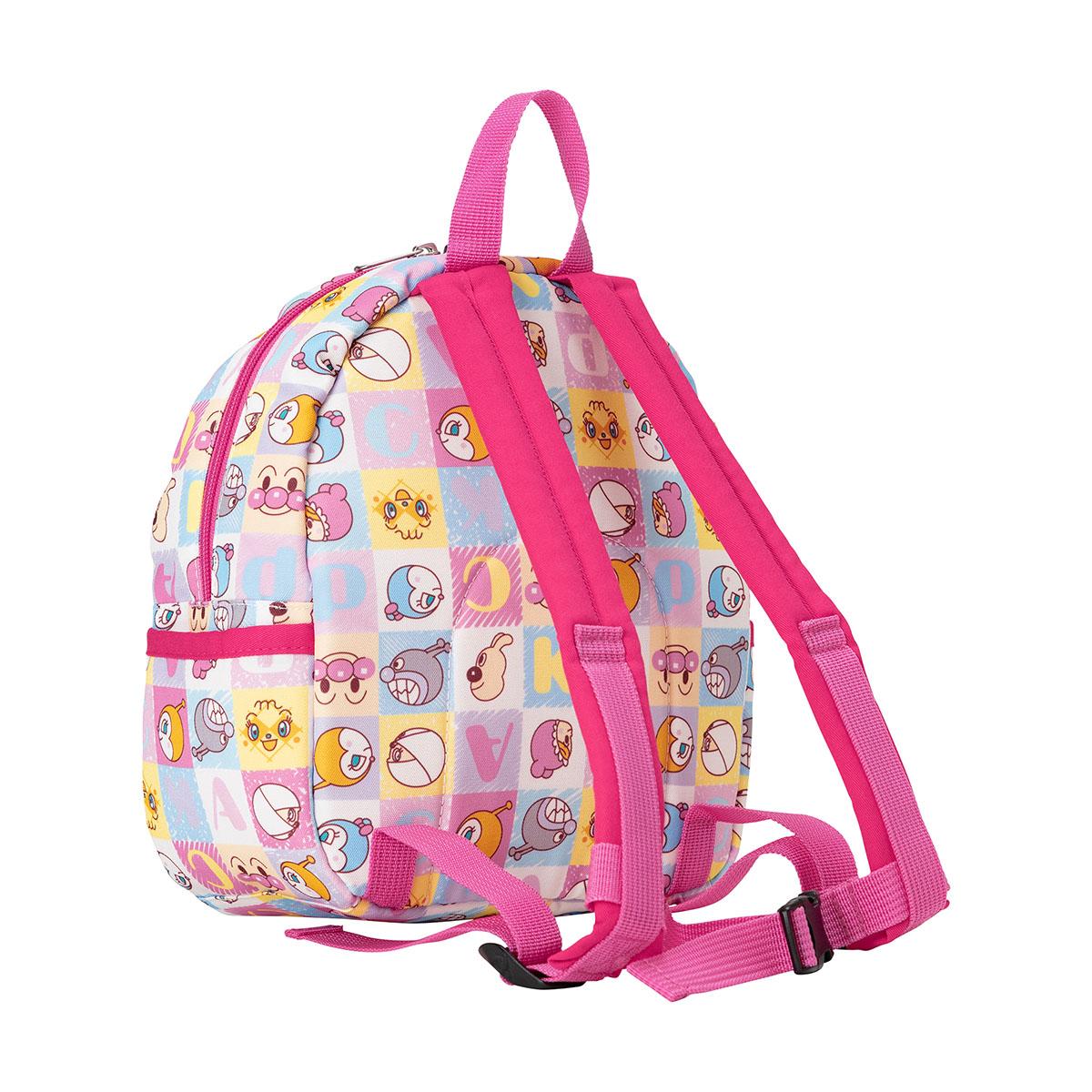 アンパンマンとなかまたちのいろんなお顔がカラフルなブロック風にデザインされた総柄のリュック♪