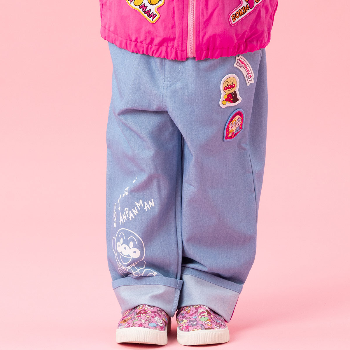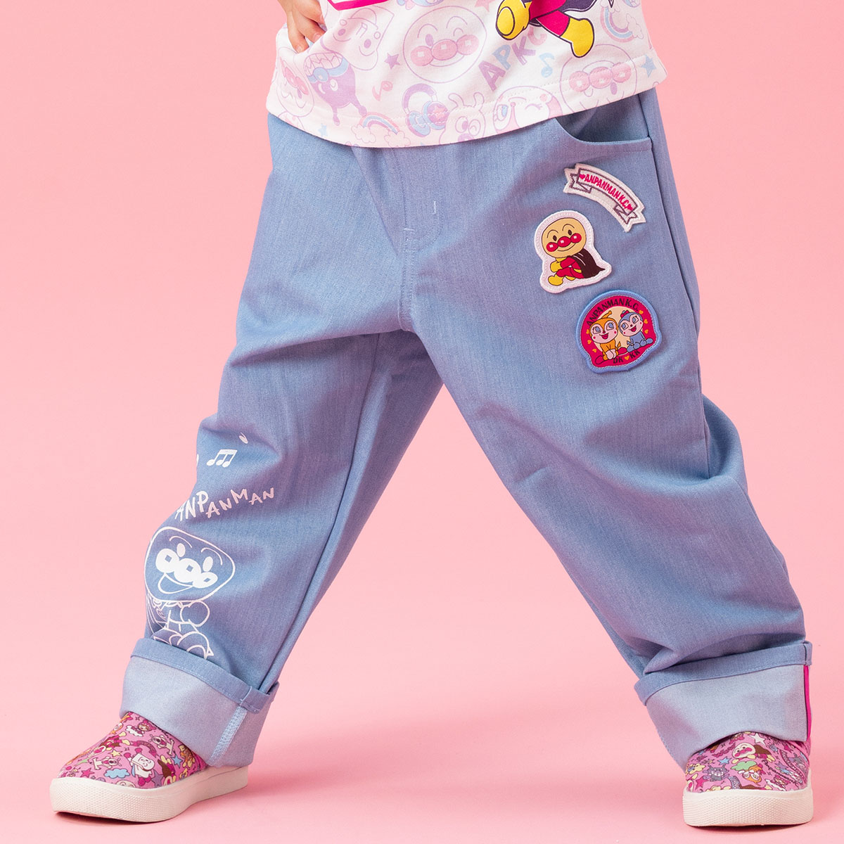 右裾にはアンパンマンがプリントされており、左足には3つのワッペンが付いています。