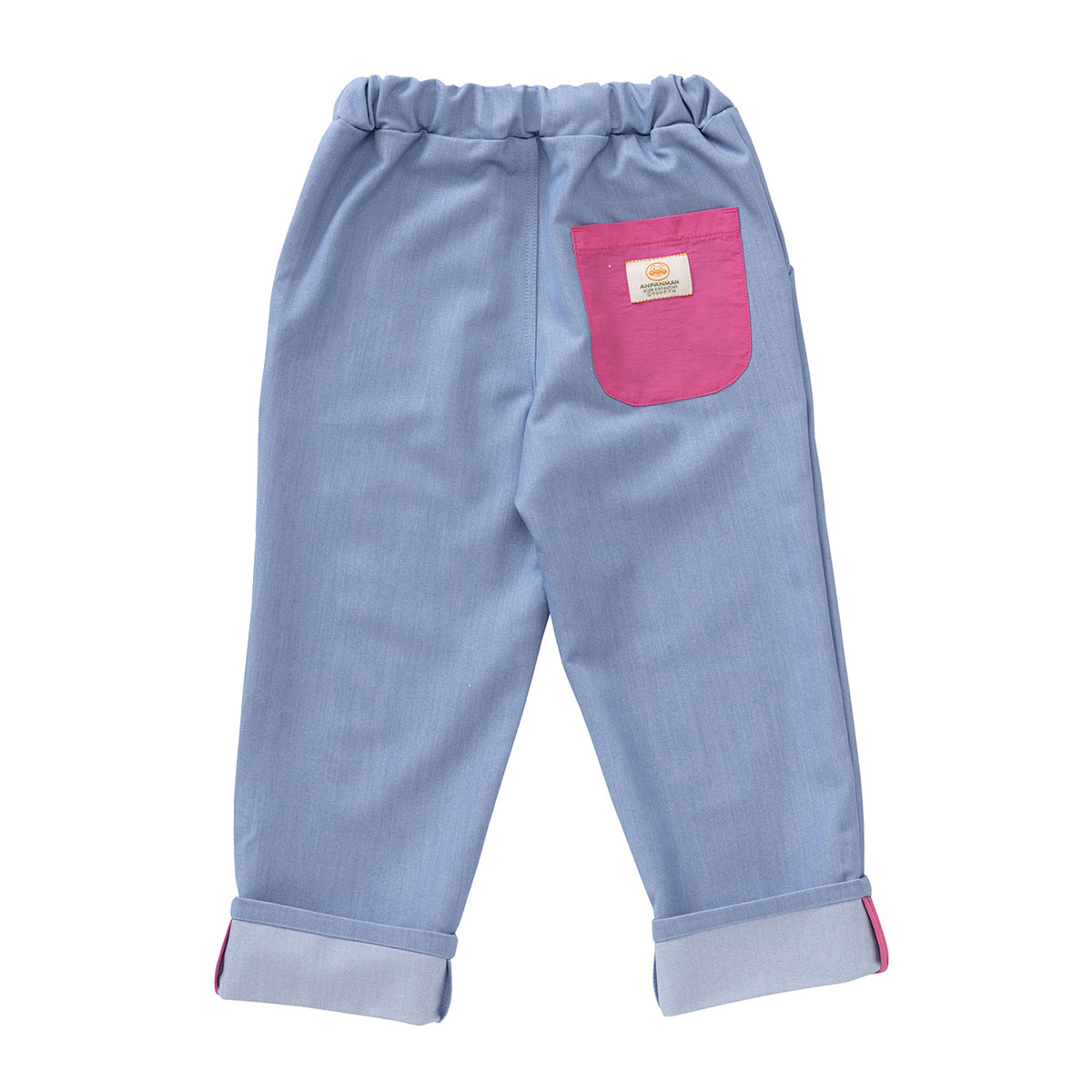 少し大きめサイズでも裾を折り返してかわいく着こなせます。