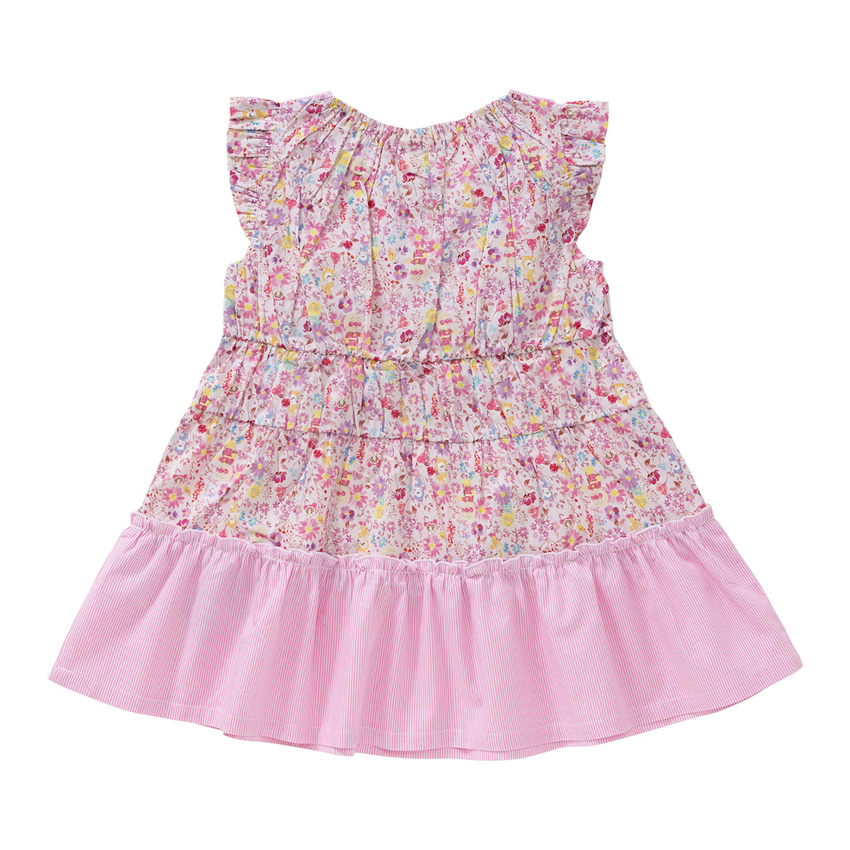 アンパンマン・ドキンちゃん・コキンちゃん・あかちゃんまん・メロンパンナちゃんがお花に囲まれたデザインの総柄がプリントされています。