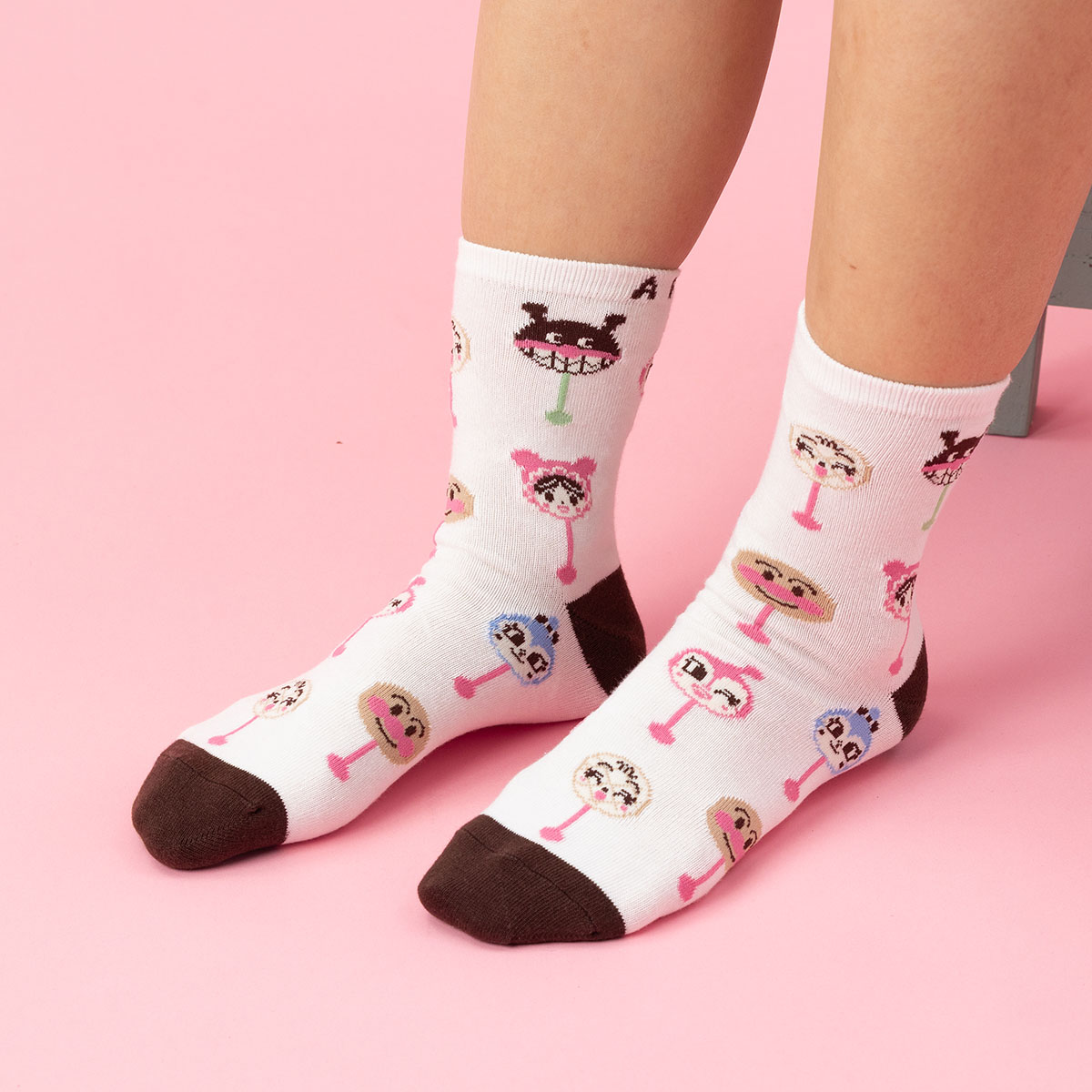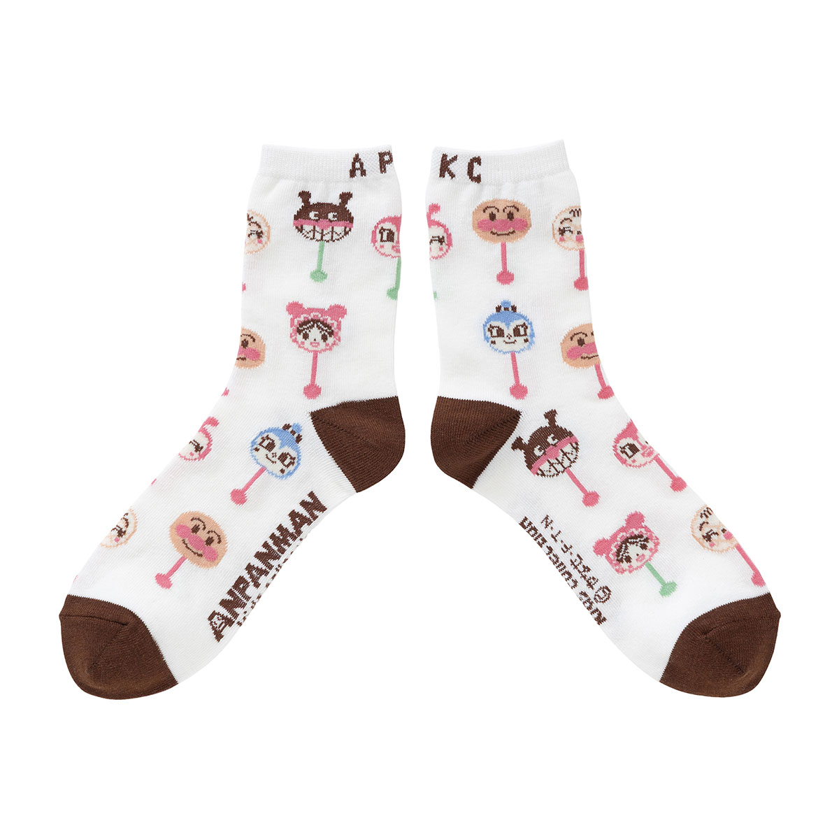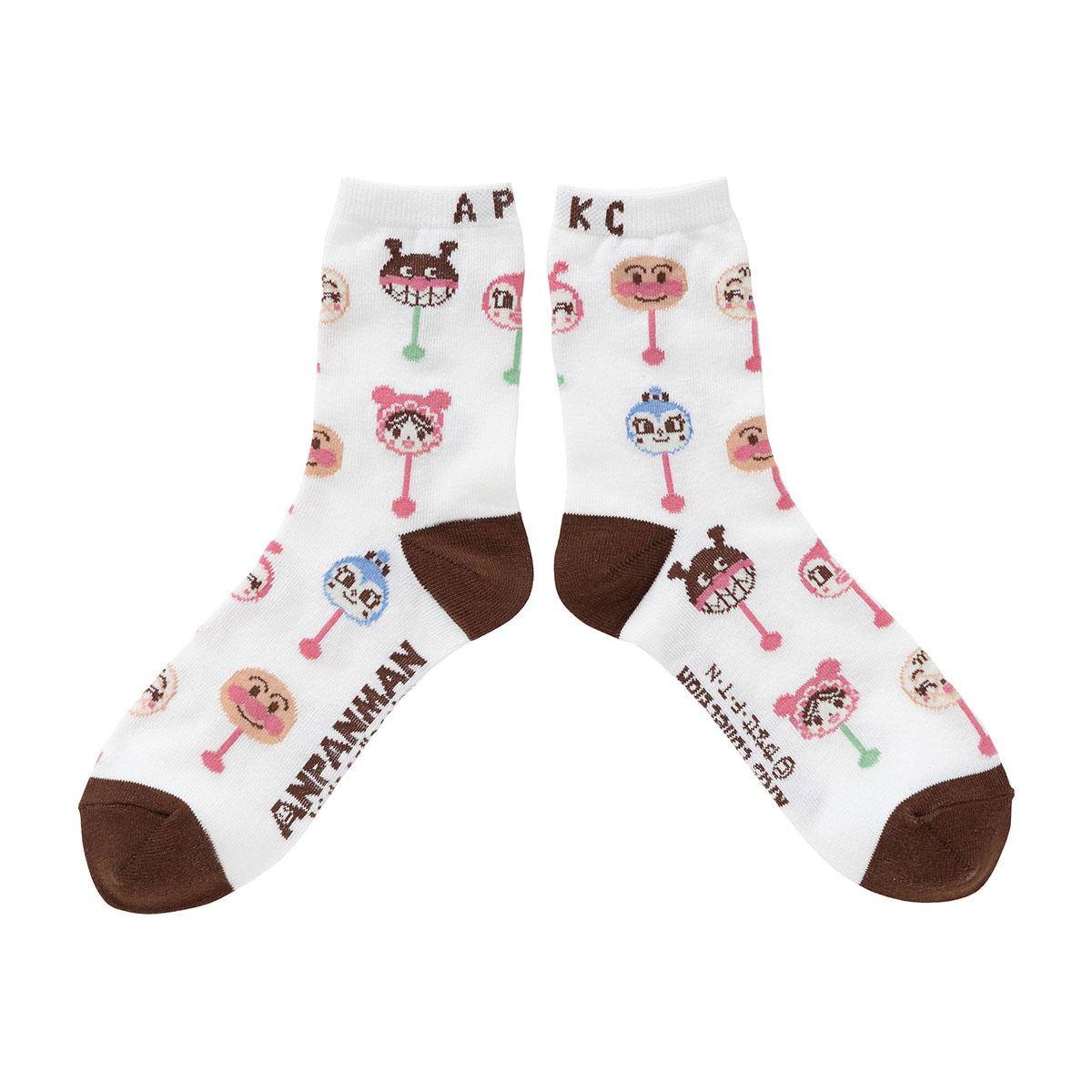 アンパンマンペロペロチョコをイメージしたクルー丈の総柄ソックス!