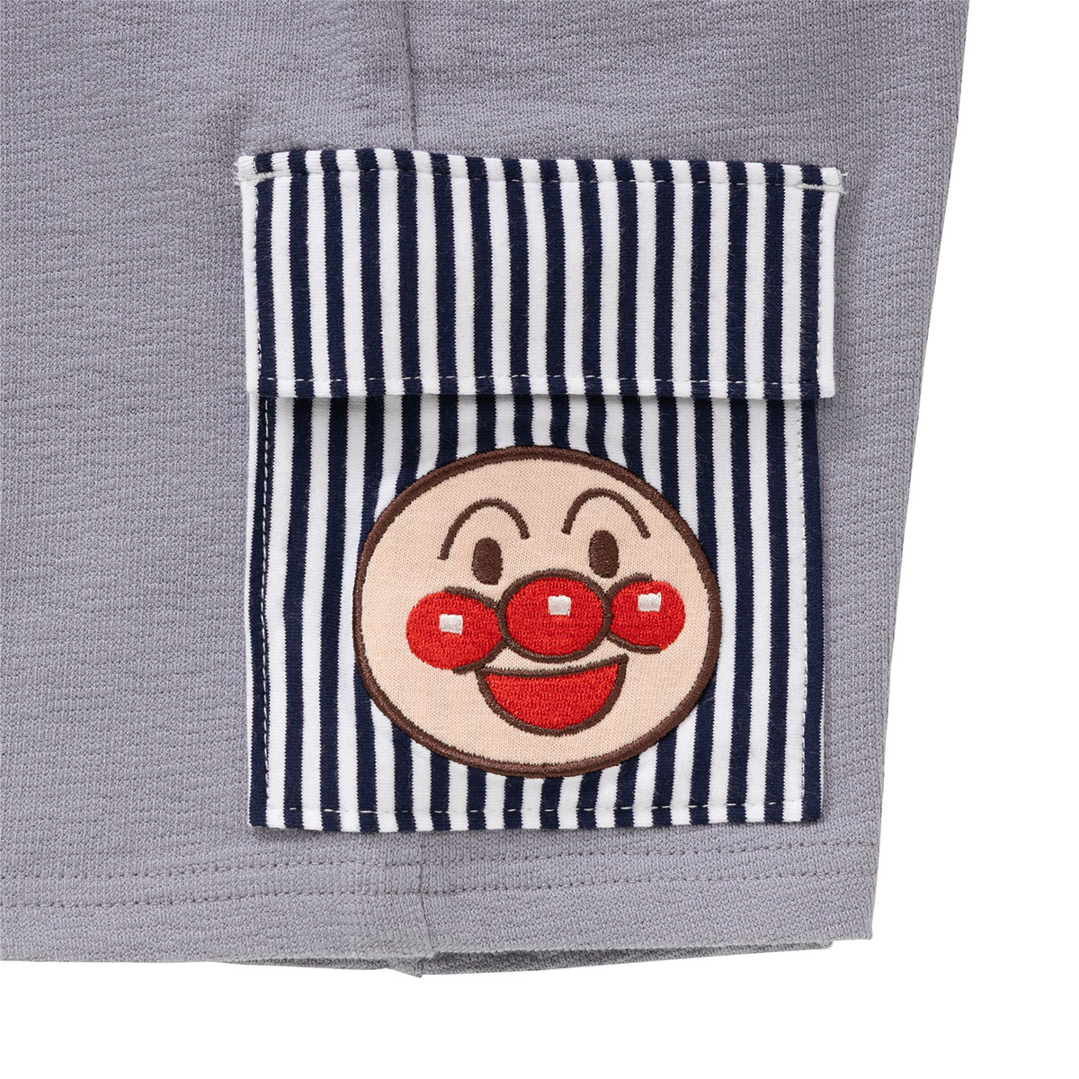 右ポケットにはアンパンマンのお顔アップリケ、左ポケットにはロゴが発泡プリントで表現されています。