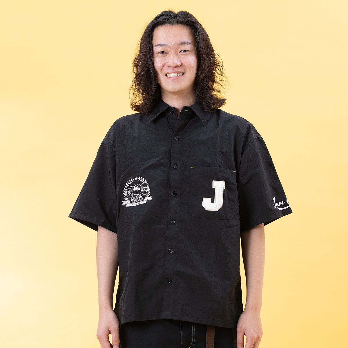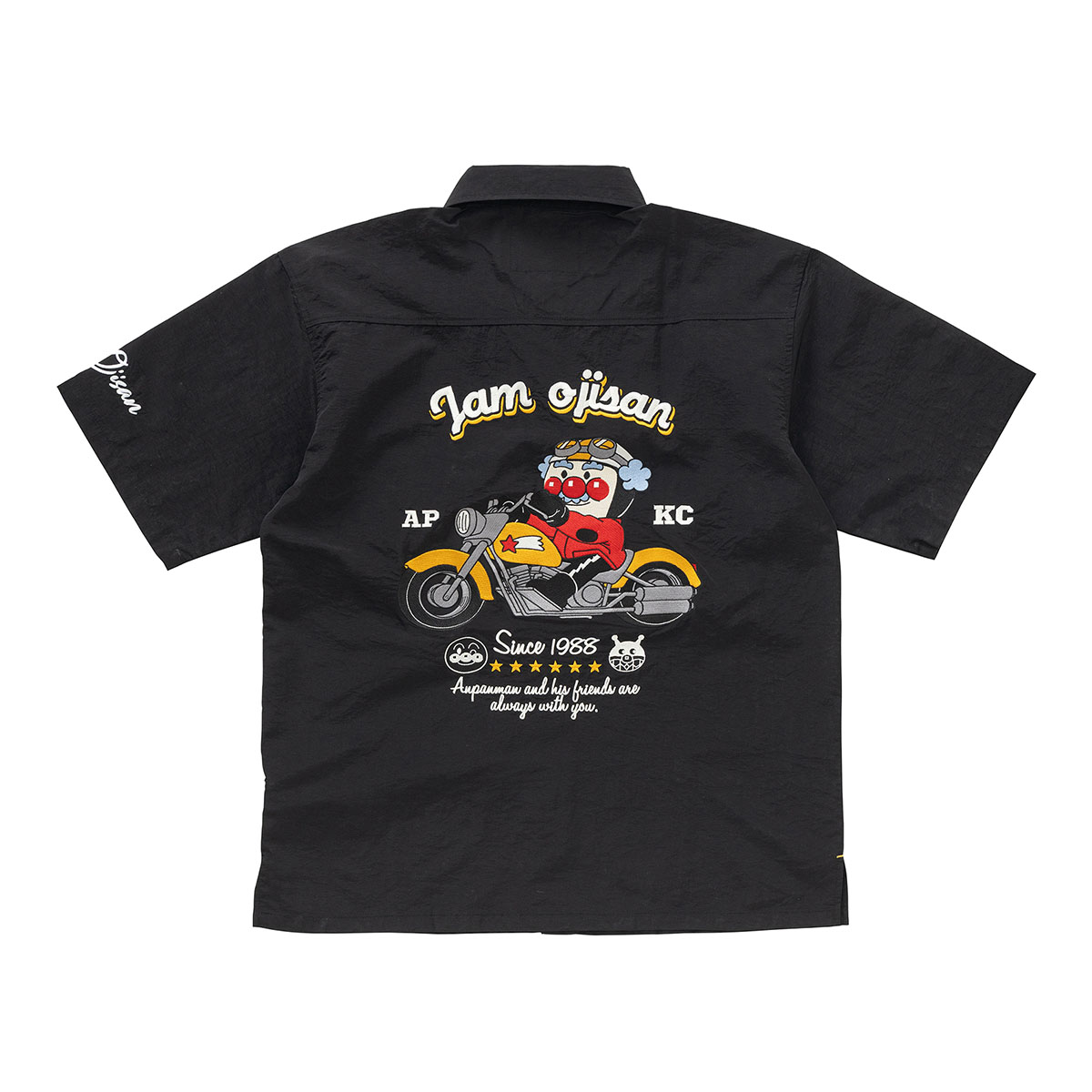 ジャムおじさんがバイクに乗った姿が大きく刺繍された半袖シャツ!