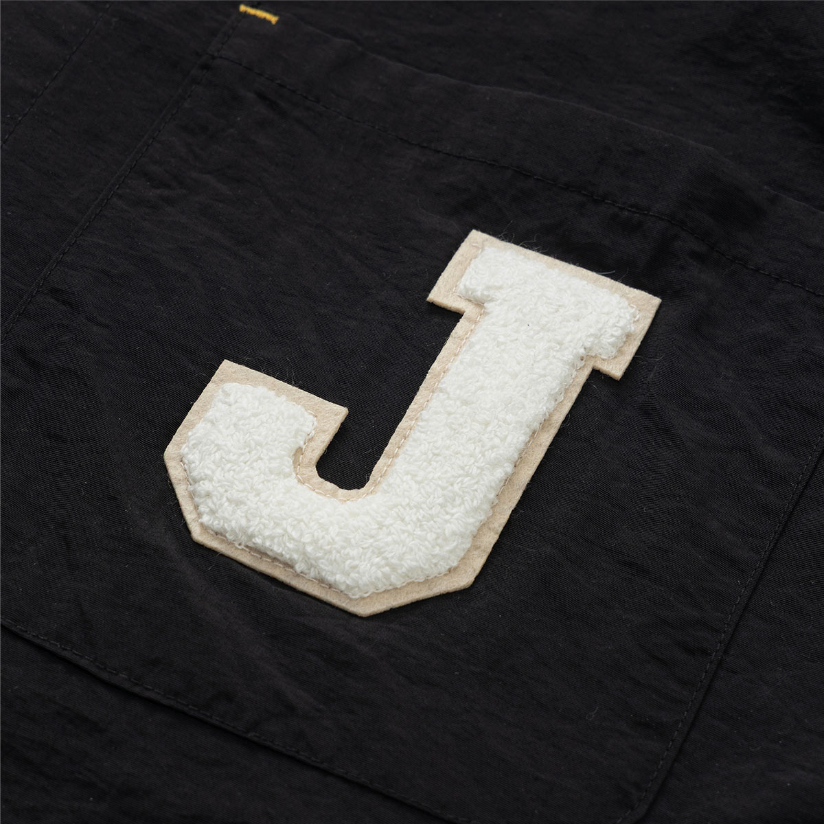 フロントにはアンパンマン、めいけんチーズ、バタコさんの刺繍と、ジャムおじさんのイニシャルの「J」がさがら刺繍でデザインされています。