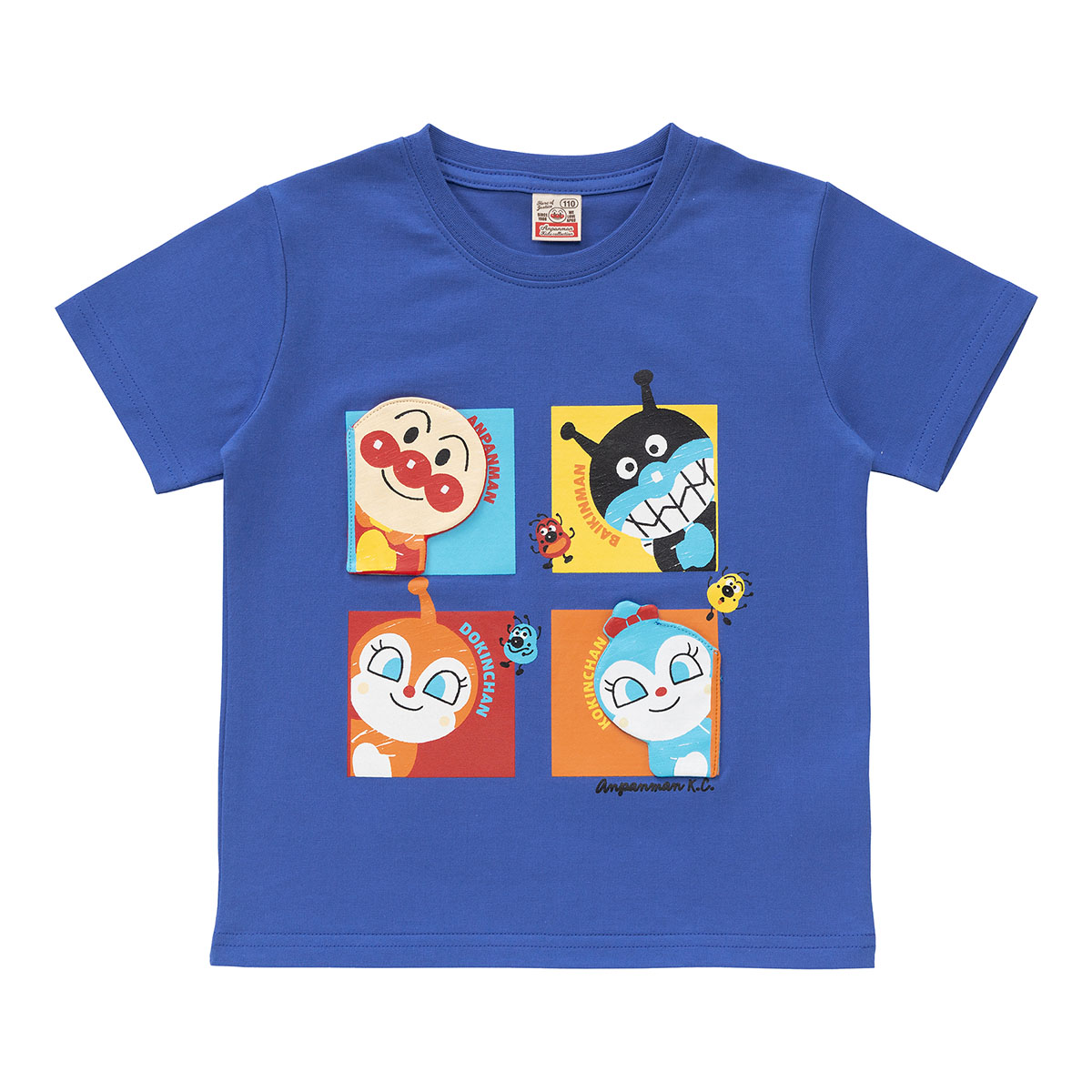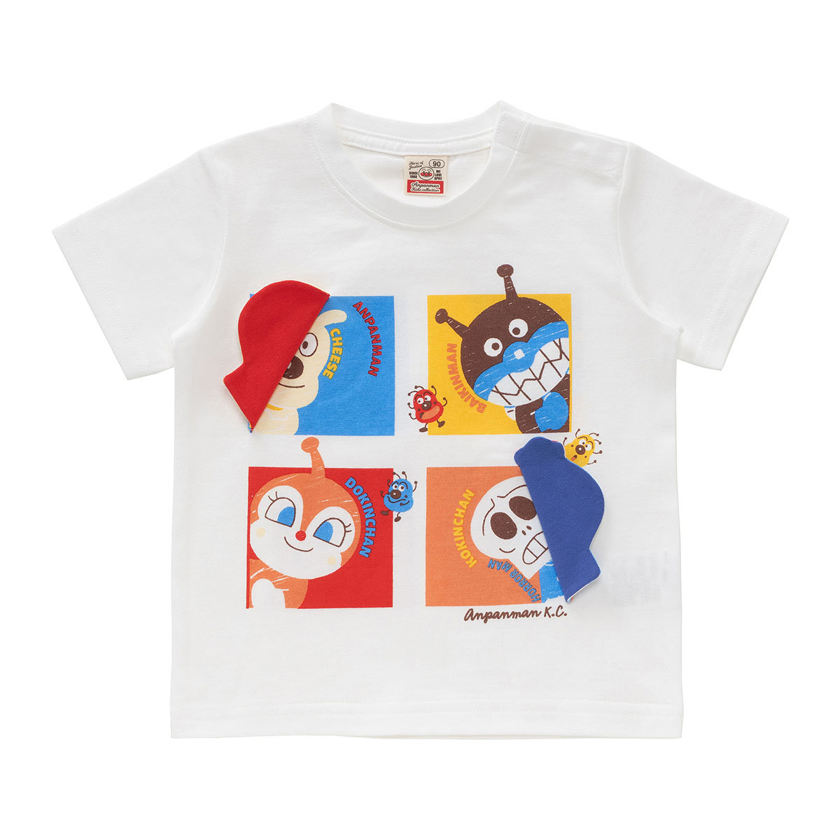 アンパンマン・ばいきんまん・ドキンちゃん・コキンちゃんがひょこっと覗いているデザインが可愛らしい半袖Tシャツ!