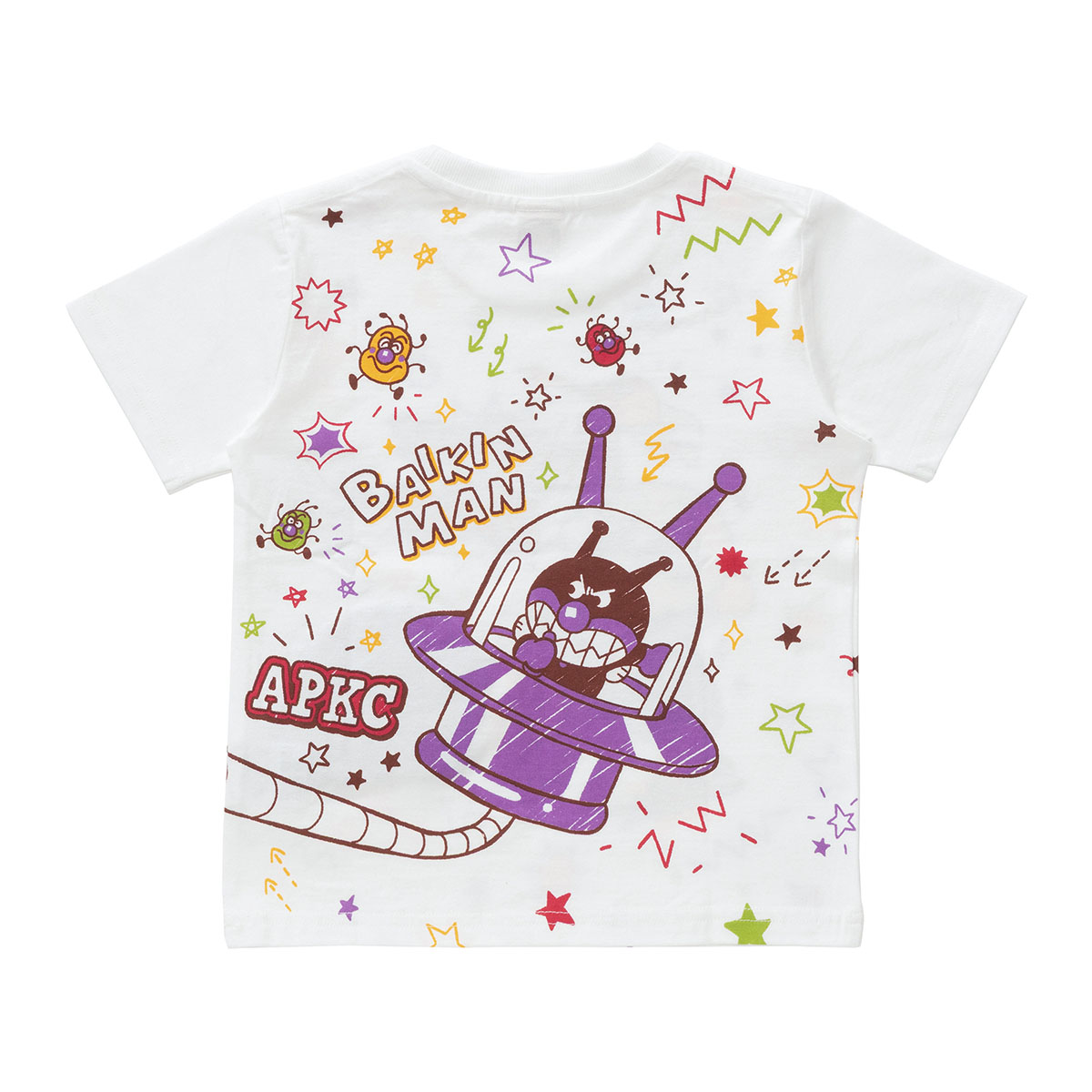 フロントとバックのデザインがつながっており、フロントにはアンパンマン・カレーパンマン・しょくぱんまん、バックにはばいきんまんとかびるんるんをプリント。