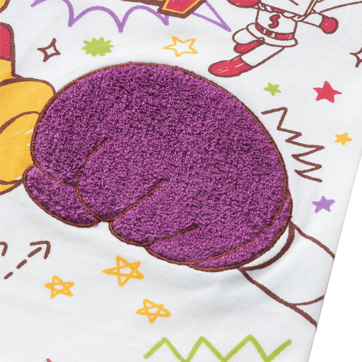 バイキンUFOの拳を、立体感のあるさがら刺繍で表現しています。
