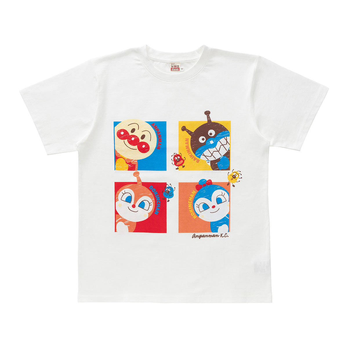 アンパンマン・ばいきんまん・ドキンちゃん・コキンちゃんがひょこっと覗いているデザインが可愛らしい半袖Tシャツ!